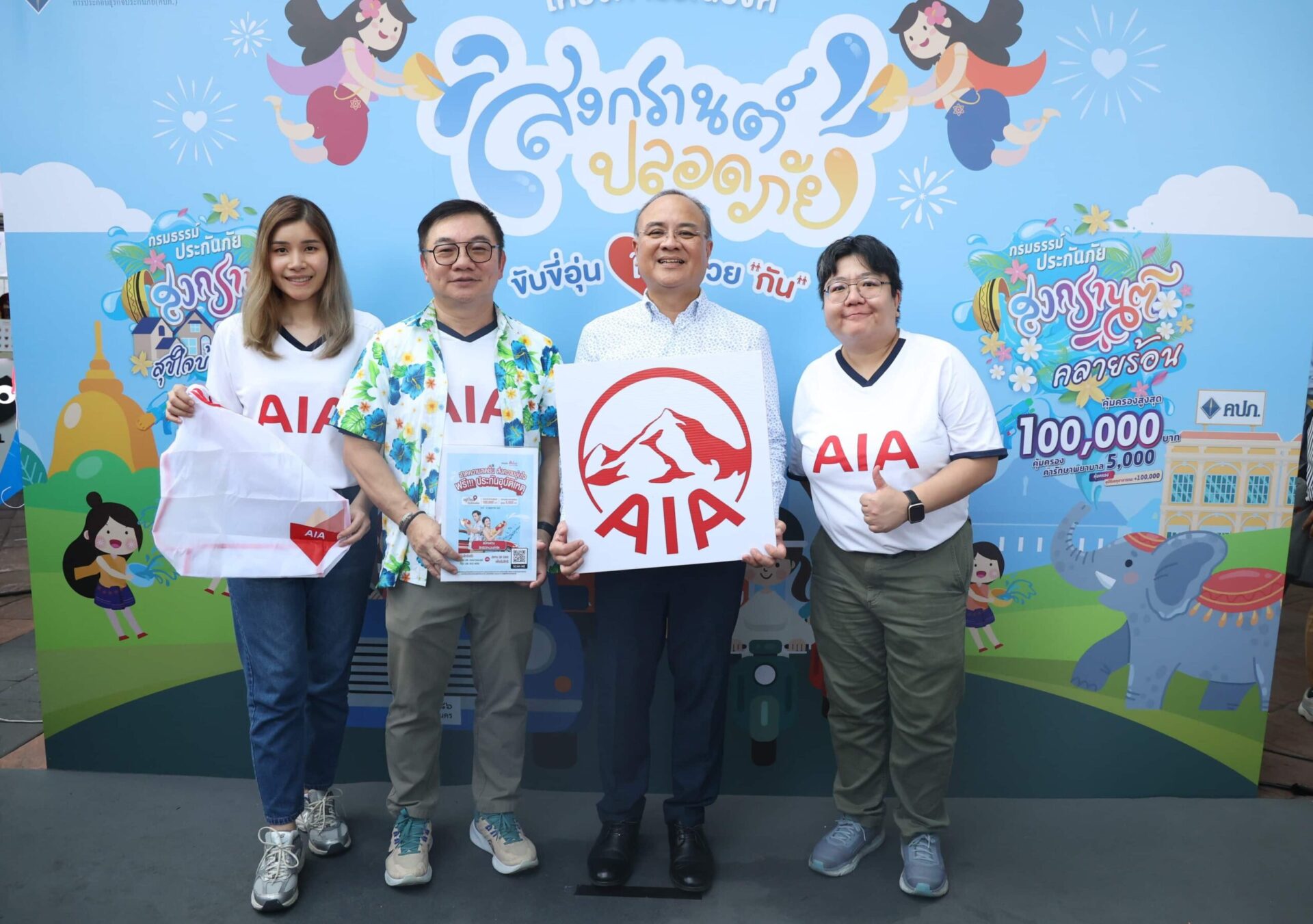 เอไอเอ ประเทศไทย นำโดย นายสุวิรัช พงศ์เสาวภาคย์ ผู้อำนวยการฝ่ายกิจการภายนอก (ที่ 2 จากซ้าย) ร่วมเปิดตัว “โครงการรณรงค์ความปลอดภัยทางถนนในช่วงเทศกาลสงกรานต์ประจำปี 2567” ภายใต้ชื่อ โครงการรณรงค์สงกรานต์ปลอดภัย ขับขี่อุ่นใจด้วย ‘กัน’ จัดขึ้นโดยสำนักงานคณะกรรมการกำกับและส่งเสริมการประกอบธุรกิจประกันภัย (คปภ.) เพื่อสนับสนุนและผลักดันการขับขี่ปลอดภัยในช่วงเทศกาลปีใหม่ไทย พร้อมส่งประชาชนเดินทางกลับบ้านอย่างปลอดภัยผ่านการมอบความคุ้มครองประกันอุบัติเหตุ ในโอกาสนี้ เอไอเอ ยังได้ร่วมออกบูธเพื่อเชิญชวนประชาชนที่เดินทางบริเวณเกาะพหลโยธินที่สนใจลงทะเบียนรับสิทธิกรมธรรม์ประกันอุบัติเหตุฟรีกับแคมเปญ “กรมธรรม์ประกันภัยกลุ่มสงกรานต์ (ไมโครอินชัวรันส์)” โดยได้รับเกียรติจาก นายชูฉัตร ประมูลผล (ที่ 2 จากขวา) เลขาธิการสำนักงาน คปภ. ให้เกียรติเป็นประธานเปิดงาน ณ เกาะพหลโยธิน อนุสาวรีย์ชยสมรภูมิ เมื่อวันที่ 4 เมษายน ที่ผ่านมา
