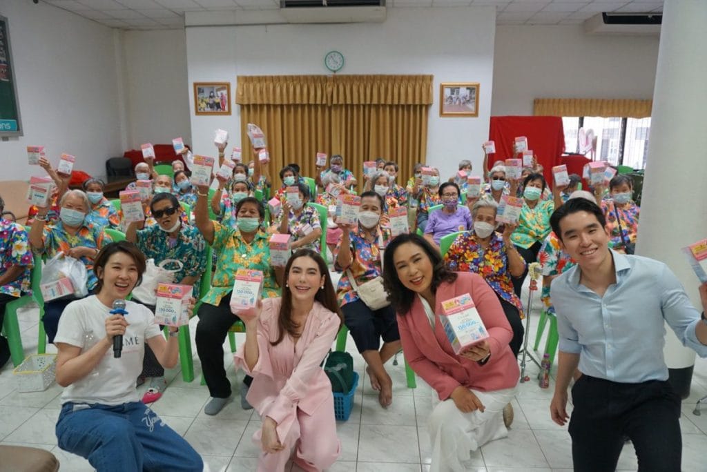 รับสงกรานต์ปีใหม่ไทยและวันผู้สูงอายุแห่งชาติ ชาเม่ ห่วงใยผู้สูงวัย “การ์ตูน-เชียร์” บุกไปถึงห้อง นำคริสตัล คอลลาเจน เพื่อเสริมข้อกระดูกให้แข็งแรงไปมอบให้ผู้สูงวัย มูลนิธิมิตรภาพสงเคราะห์บ้านพักคนชราหญิงติวานนท์ ท่ามกลางรอยยิ้มและบรรยากาศที่เต็มไปด้วยความอบอุ่นซาบซึ้งใจ
