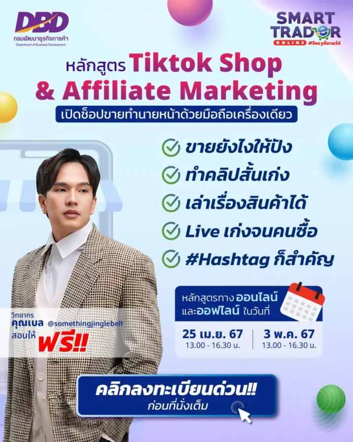 โอกาสคนมีฝัน มาถึงแล้ว ! กรมพัฒนาธุรกิจการค้า เชิญอบรม“สุดยอดนักขาย” #ใครๆก็ขายได้ เฟ้นหานักขายออนไลน์ร่วมเรียนรู้การค้าออนไลน์ แบบ “Affiliate” ถึงไม่มีสินค้าก็ขายได้