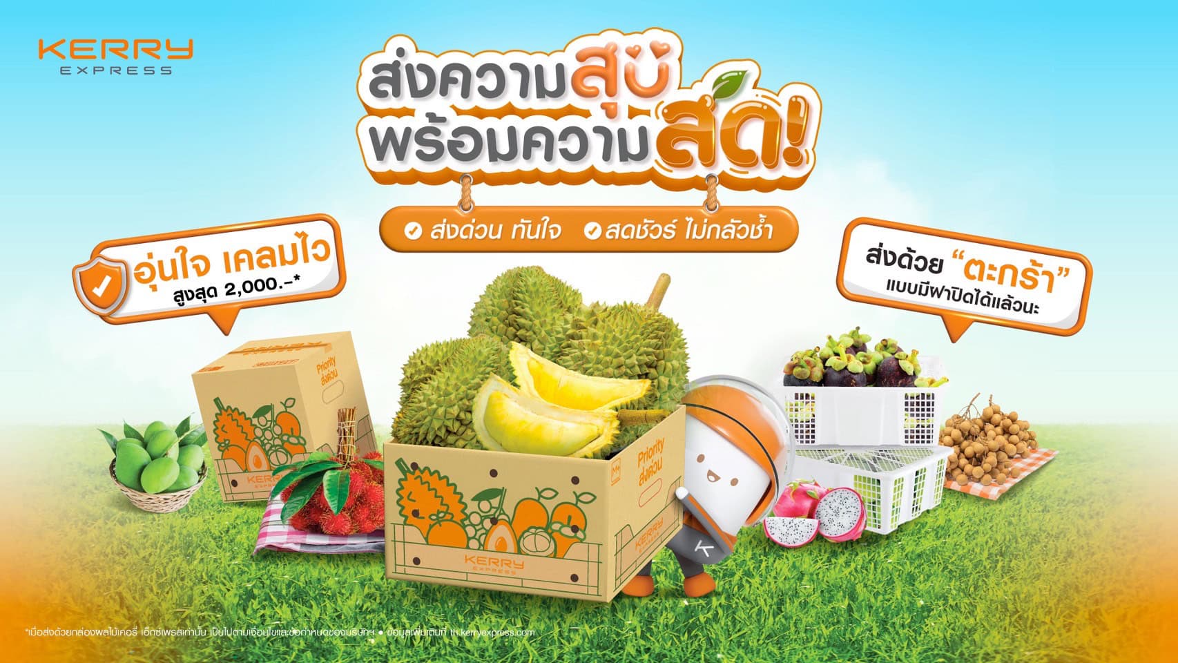 บริษัท เคอรี่ เอ็กซ์เพรส (ประเทศไทย) จำกัด (มหาชน) หรือ KEX ผู้นำด้านธุรกิจจัดส่งพัสดุด่วนทั่วไทย ต้อนรับฤดูผลไม้ เปิดแคมเปญ “ส่งความสุข พร้อมความสด” พร้อมส่งผลไม้สดใหม่จากสวนถึงมือลูกค้า โดดเด่นด้วยบริการคุณภาพ รวดเร็ว ปลอดภัย เคลมไว ภายใน 1 วัน* หมดกังวลทั้งคนส่งและคนรับ ส่งมอบประสบการณ์ที่ดีกว่าให้คนไทยได้อร่อยฟินกับผลไม้สดใหม่เหมือนเพิ่งเก็บจากสวน