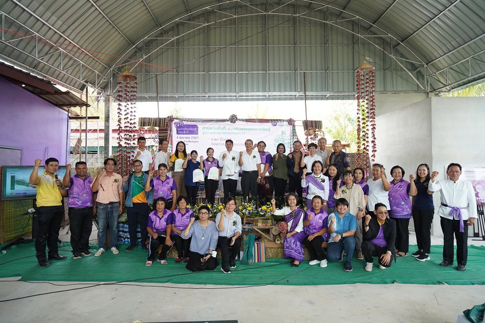 วันนี้ กลุ่ม ก.กก บึงกาฬ ได้เดินทางมาถึงการเป็น “ชุมชนตัวแบบ” ที่สามารถออกแบบการเรียนรู้ได้อย่างยืดหยุ่น ตอบโจทย์ชีวิต และตรงใจคนในชุมชนเท่านั้น พวกเขายังร่วมกันสร้างคนให้กลายเป็นทั้งปราชญ์ แกนนำชุมชน และที่สำคัญคือ เป็นวิทยากรถ่ายทอดความรู้กระบวนการผลิตกกและผือตั้งแต่ต้นน้ำไปจนถึงปลายน้ำ ไม่ว่าจะเป็นการปลูก การย้อม การสาน และการแปรรูป ให้กับคนในและนอกชุมชนทุกช่วงวัย รวมถึงเกิดการจัดตั้งศูนย์การเรียนรู้ ก.กก บึงกาฬ ขึ้นในตำบลโนนสมบูรณ์ โดยเมื่อวันที่ 4 เมษายน 2567 ที่ผ่านมา กลุ่ม ก.กก บึงกาฬ ร่วมมือกับกองทุนเพื่อความเสมอภาคทางการศึกษา ศูนย์ส่งเสริมการเรียนรู้ตำบลโนนสมบูรณ์ อำเภอเมืองบึงกาฬ จังหวัดบึงกาฬ จัดเวที “สานพลังพื้นที่…ร่วมสร้างสังคมแห่งการเรียนรู้สู่ความเสมอภาคทางการศึกษา” เพื่อให้ภาคีเครือข่ายทั้งในและนอกพื้นที่ได้มาแลกเปลี่ยนเรียนรู้การทำงานระหว่างกัน