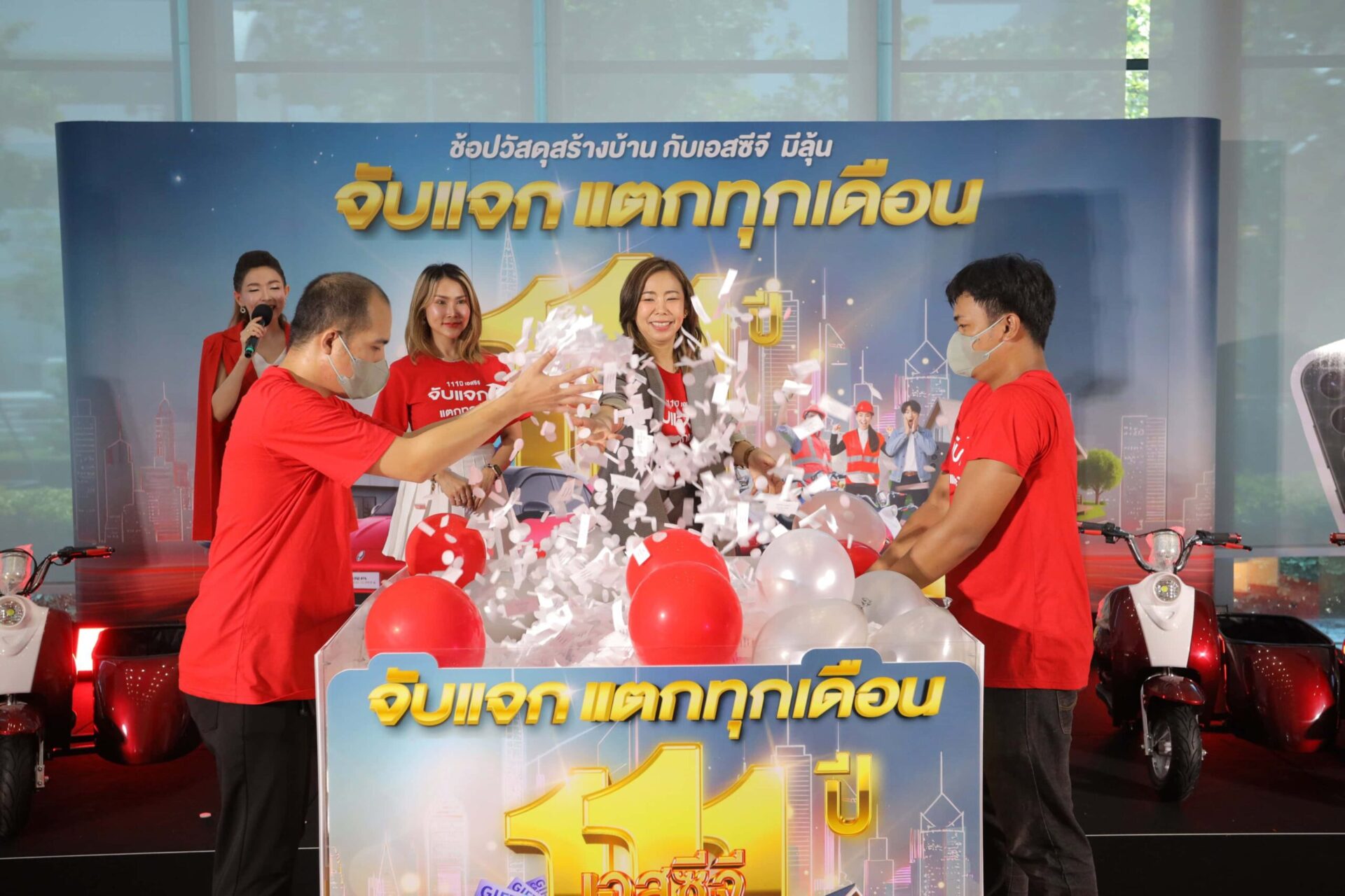 ยิ่งไปกว่านั้น เอสซีจีได้ร่วมเป็นส่วนหนึ่งในการสนับสนุนนโยบายภาครัฐ ‘โครงการเติมเงิน 10,000 บาท ผ่านดิจิทัลวอลเล็ต’ เพื่อกระตุ้นเศรษฐกิจด้วยการส่งเสริมให้มีเม็ดเงินหมุนเวียนในพื้นที่และช่วยบรรเทาภาระค่าครองชีพ ยกระดับและพัฒนาคุณภาพชีวิตด้านที่อยู่อาศัย ผ่านแคมเปญใหญ่แห่งปี “111 ปี เอสซีจี จับแจกแตกทุกเดือน” ในโอกาสฉลองครบรอบ 111 ปี เอสซีจี จับแจกทั่วไทยแจกใหญ่ทุกภาคทั่วประเทศ เริ่ม! 14 กุมภาพันธ์ 2567 – 15 สิงหาคม 2567 ของรางวัลมากกว่า 111 รางวัล รวมมูลค่ากว่า 1.5 ล้านบาท โดยสามารถลงทะเบียนรับสิทธิ์ผ่าน QR Code ที่สื่อ ณ จุดขาย และช่องทางออนไลน์ของเอสซีจี ได้ที่ร้าน SCG HOME Experience, SCG HOME บุญถาวร และ SCG Authorized Dealer ทั่วประเทศ รวมถึง SCG HOME Online เมื่อซื้อวัสดุก่อสร้างเอสซีจีในกลุ่ม Housing Product Solutions Business ทุก ๆ 5,000 บาท และในกลุ่มปูนซีเมนต์ ตราเอสซีจี ปูนซีเมนต์ตราเสือ ทุก ๆ 10,000 บาท จะได้รับ 1 สิทธิ์ พบกับขบวนคาราวานจะเดินสายแจกรางวัลทั่วประเทศ รางวัลใหญ่รถยนต์ GWM New ORA Good Cat รุ่น PRO จำนวน 1 รางวัล และรางวัลอื่น ๆ อีกมากมาย เตรียมลุ้นโชคกันได้ทุกวันที่ 29 ของทุกเดือน โดยจะมีการจับรางวัลทั้งหมด 5 ครั้ง