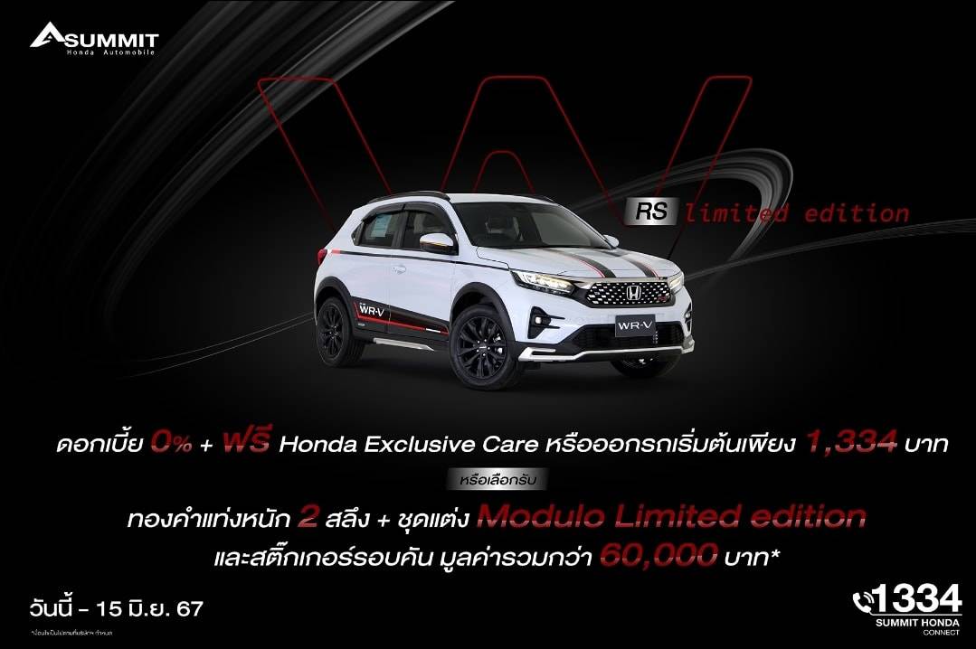 ++พร้อมรับข้อเสนอจัดเต็มชุดใหญ่ เมื่อจองและออกรถยนต์ ฮอนด้า ดับเบิลยูอาร์-วี อาร์เอส ลิมิเต็ด อิดิชั่น