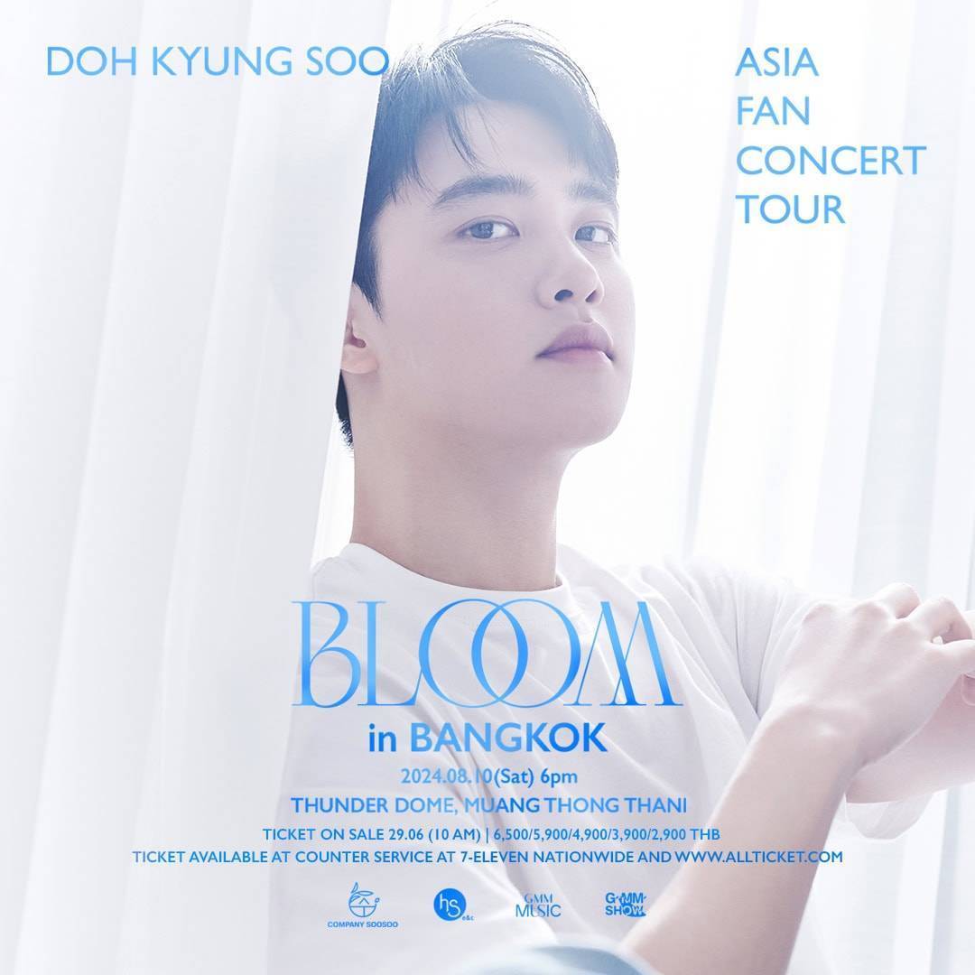 2024 DOH KYUNG SOO ASIA FAN CONCERT TOUR in BANGKOK จะจัดขึ้นในวันที่ 10 สิงหาคม 2567 ณ ธันเดอร์โดม เมืองทองธานี ใครอยากเจอ โด คยองซู เตรียมตัวกดบัตร และลุ้นรับ Fan Benefits สุดฟินพร้อมกันในวันที่ 29 มิถุนายน 2567 นี้ ตั้งแต่เวลา 10.00 น. เป็นต้นไป ผ่านทางเคาน์เตอร์เซอร์วิสในร้าน 7-Eleven ทุกสาขาทั่วประเทศ และ www.allticket.com