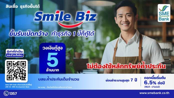 SME D Bank ทุ่มหมื่นล้าน เปิดตัวสินเชื่อ ‘Smile Biz ธุรกิจยิ้มได้’ ปลดข้อจำกัด เปิดกว้างเอสเอ็มอีเข้าถึงแหล่งเงินทุนดอกเบี้ยถูก ไม่ต้องใช้หลักทรัพย์ค้ำประกัน