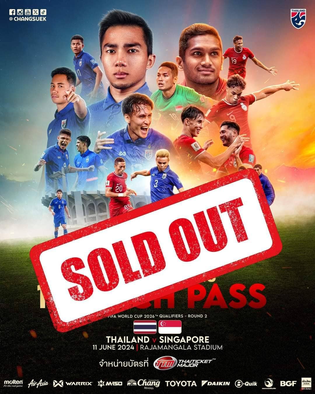 สำหรับ ทีมชาติไทย จะลงสนามทำการแข่งขันฟุตบอลโลก 2026 รอบคัดเลือก โซนเอเชีย รอบ 2 กลุ่ม C นัดที่ 6 พบกับสิงคโปร์ ที่ราชมังคลากีฬาสถาน ในวันที่ 11 มิถุนายน 2567 เวลา 19.30 น. ถ่ายทอดสดทาง ไทยรัฐทีวี