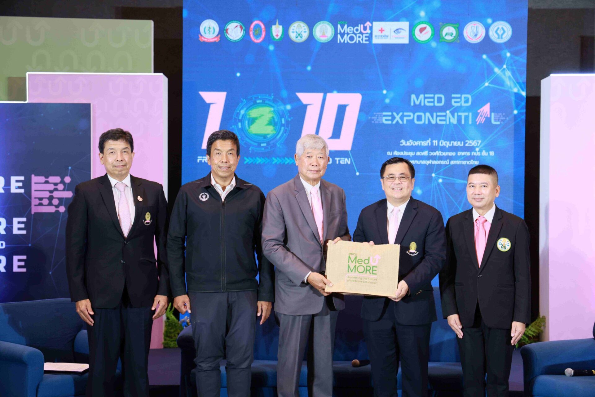 คณะแพทย์ฯ พัฒนา Online Learning Platform ภายใต้ชื่อ “MedUMORE” โดยในการจัดงานครั้งนี้ นำเสนอภายใต้แนวคิด 1-2-10 (1 to 10) Med Ed Exponential ซึ่ง 1 หมายถึงวิสัยทัศน์ของ ในการเป็นผู้นำด้านคลังความรู้ออนไลน์ด้าน สุขภาพการแพทย์และสาธารณสุขที่ใหญ่ที่สุดในประเทศไทย 2 หมายถึงการดำเนินงาน มาเป็นปีที่ 2 และมีการเข้าชมกว่า 2 ล้านครั้ง สามารถรองรับการใช้งานทุกรูปแบบ ตอบโจทย์วิถีชีวิตคนรุ่นใหม่และการเรียนรู้ที่ไม่จำกัดเพียงแค่ในตำรา โดยรวบรวมเนื้อหา จากผู้เชี่ยวชาญเฉพาะทาง ทั้งในระดับประเทศและระดับโลก ตลอดจนการประชุมวิชาการ และ 10 หมายถึงการเติบโตอย่างก้าวกระโดดของการศึกษาทางด้านการแพทย์ หรือแบบ Exponential โดยการมีภาคีเครือข่ายเข้าร่วมให้ความรู้ทางการแพทย์และประสบการณ์ ความเชี่ยวชาญของบุคลากรจาก 10 องค์กรแพทย์ ส่งเสริมให้ MedUMORE เป็น นวัตกรรมและเทคโนโลยีทางการแพทย์ สู่การเผยแพร่องค์ความรู้ทุกมิติบน Digital Platform ที่มีมาตรฐานเชื่อมต่อผู้ใช้งานทั่วโลก ให้สามารถเข้าถึงได้สะดวกรวดเร็ว ต่อเนื่องและปลอดภัย