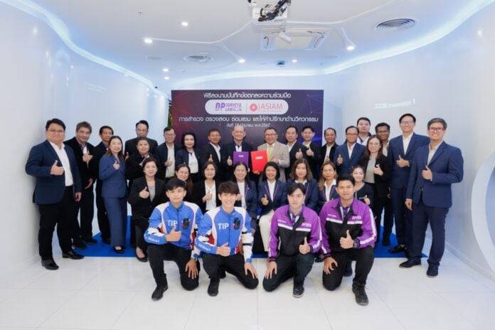 นายจุมพล ริมสาคร ประธานกรรมการ พร้อมด้วย นายกลพัฒน์ รัตนาภรณ์ กรรมการผู้จัดการ บริษัท ดี พี เซอร์เวย์ แอนด์ลอว์ จำกัด หรือ “DP Survey” และ ดร.ศักดิ์ดา พรรณไวย กรรมการ บริษัท เอ สยาม อินฟรา จำกัด ร่วมพิธีลงนามบันทึกข้อตกลงความร่วมมือเรื่อง การสำรวจ ตรวจสอบ ซ่อมแซม และให้คำปรึกษาด้านวิศวกรรม