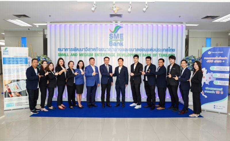 นายพิชิต มิทราวงศ์ กรรมการผู้จัดการ ธนาคารพัฒนาวิสาหกิจขนาดกลางและขนาดย่อมแห่งประเทศไทย (ธพว.) หรือ SME D Bank พร้อมคณะผู้บริหาร ร่วมแสดงความยินดีกับ บริษัท เออเบิ้นเวย์ จำกัด โดย นายนิมิต ตั้งวรารัตน์ ประธานบริษัท และนางสาวอารยา อิ่มแสง CEO ธุรกิจแฟรนไชส์ร้านสะดวกซักอัจฉริยะ แบรนด์ “Trendy Wash” ที่ได้รับการสนับสนุนจาก SME D Bank เข้าร่วมลงทุน ผ่านกองทรัสต์เพื่อกิจการเงินร่วมลงทุน กองทุนร่วมลงทุนในกิจการ SMEs (กองทุนย่อยกองที่ 2) ที่จัดตั้งโดย SME D Bank และบริษัท พีพีเอ็ม แอ็ดไวเซอรี่ จำกัด เป็นผู้จัดการทรัสต์ ณ บริเวณชั้น 1 อาคาร SME Bank Tower เมื่อเร็ว ๆ นี้