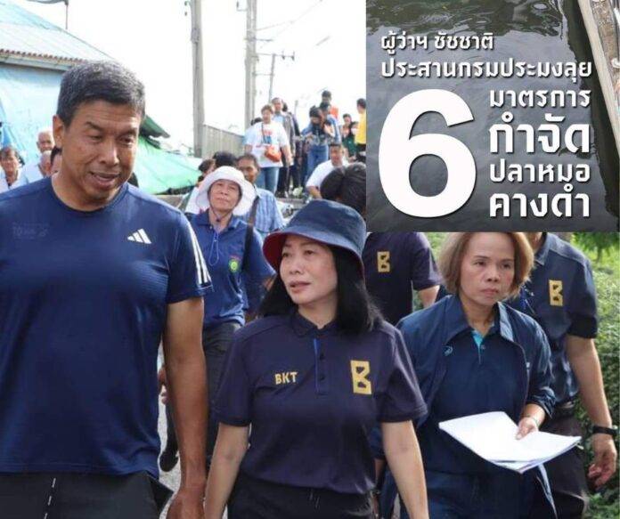 (13 ก.ค. 67) นายชัชชาติ สิทธิพันธุ์ ผู้ว่าราชการกรุงเทพมหานคร พร้อมด้วย นายศานนท์ หวังสร้างบุญ รองผู้ว่าราชการกรุงเทพมหานคร นายณัฐชา บุญไชยอินสวัสดิ์ สมาชิกสภาผู้แทนราษฎร เขตบางขุนเทียน ผู้บริหารสำนักงานเขตบางขุนเทียน ผู้แทนกรมประมง และผู้เกี่ยวข้อง ลงพื้นที่ติดตามสถานการณ์แพร่ระบาดของปลาหมอคางดำ เขตบางขุนเทียน