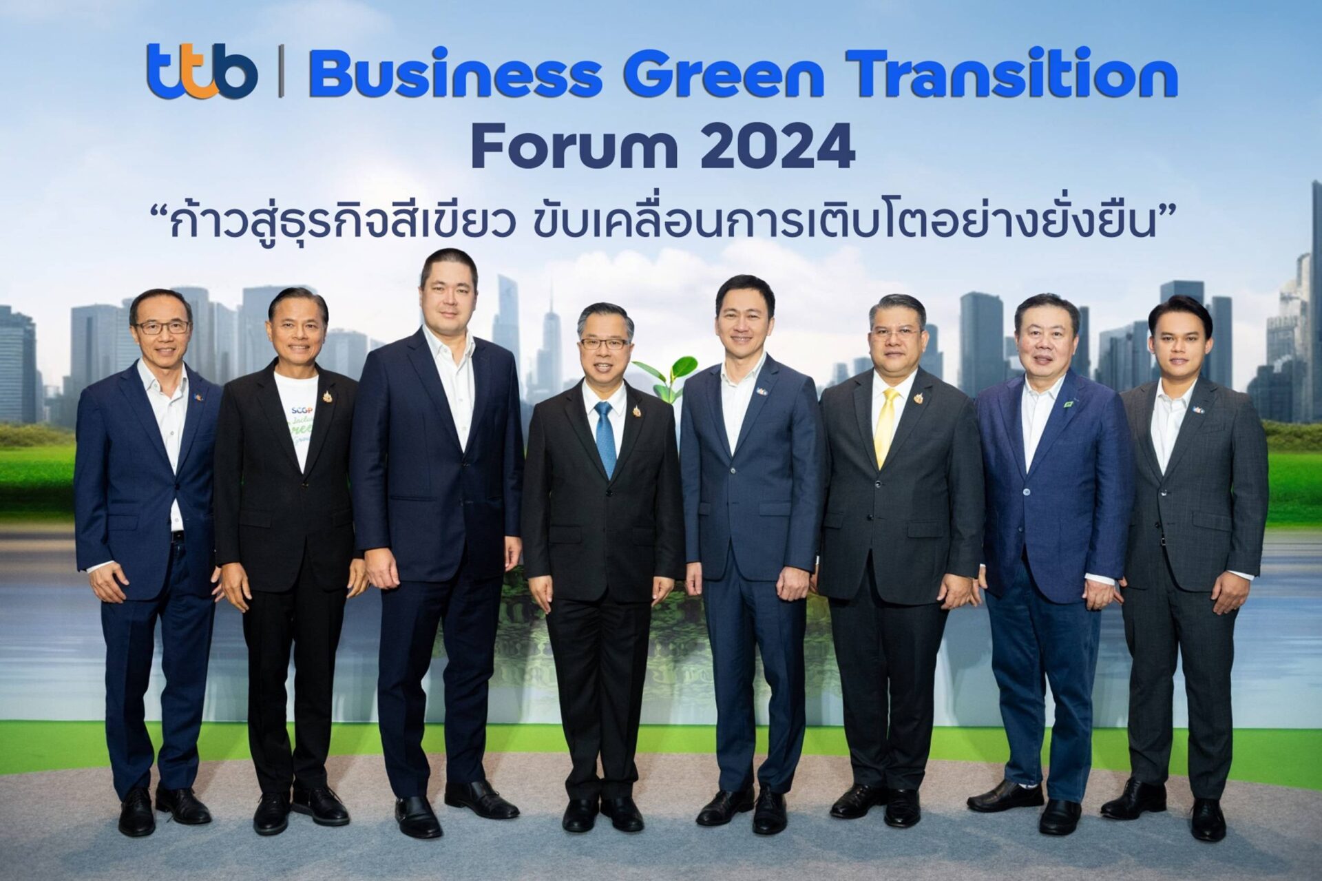 ทีเอ็มบีธนชาต หรือ ทีทีบี มุ่งมั่นร่วมผลักดันภาคธุรกิจเปลี่ยนผ่านสู่ธุรกิจสีเขียว จัดสัมมนาใหญ่ ttb I Business Green Transition Forum 2024 “ก้าวสู่ธุรกิจสีเขียว ขับเคลื่อนการเติบโตอย่างยั่งยืน” สำหรับผู้ประกอบการไทย คู่ค้า และพันธมิตรทางธุรกิจ เพื่อแบ่งปันประสบการณ์จากผู้บริหารที่พัฒนาองค์กรด้วยแนวคิด ESG สู่เส้นทางการเปลี่ยนผ่านองค์กรสู่ความยั่งยืน และเป็นโอกาสของธุรกิจไทย มุ่งสู่การเป็นองค์กรคาร์บอนต่ำที่เติบโตอย่างยั่งยืน