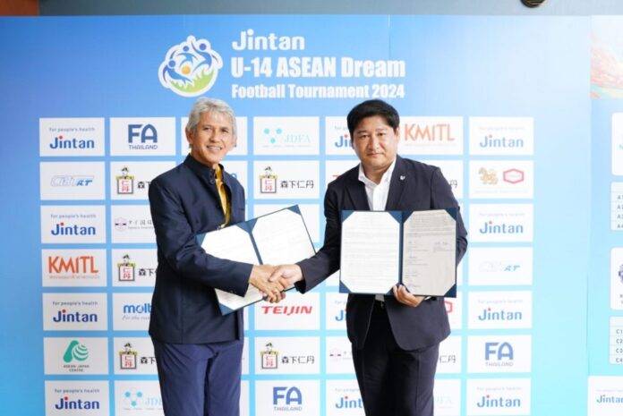 สมาคมกีฬาฟุตบอลแห่งประเทศไทย ในพระบรมราชูปถัมภ์ และองค์กร Japan Dream Football Association (JDFA) พร้อมด้วย บริษัท โมริชิตะ ยินตัน จำกัด ผู้สนับสนุนหลักการแข่งขันฯ ร่วมเปิดการแข่งขันฟุตบอลเยาวชนอาเซียน “JINTAN U-14 ASEAN Dream Football Tournament 2024” ต่อเนื่องเป็นปีที่ 7 นำนักเตะรุ่นอายุไม่เกิน 14 ปี จากไทย และ ญี่ปุ่น รวม 16 ทีม ร่วมดวลแข้งระหว่างวันจันทร์ที่ 22 – วันเสาร์ที่ 27 กรกฎาคม 2567 ณ KMITL Stadium สถาบันเทคโนโลยีพระจอมเกล้าเจ้าคุณทหารลาดกระบัง เพื่อมุ่งส่งเสริมและพัฒนาทักษะการเล่นฟุตบอลของเยาวชน พร้อมคัดเลือกเยาวชนที่มีฝีเท้าที่โดดเด่นไปเปิดประสบการณ์และฝึกทักษะกับสโมสรชั้นนำภายใต้ J-League ลีกฟุตบอลอาชีพระดับสูงสุดของประเทศญี่ปุ่น