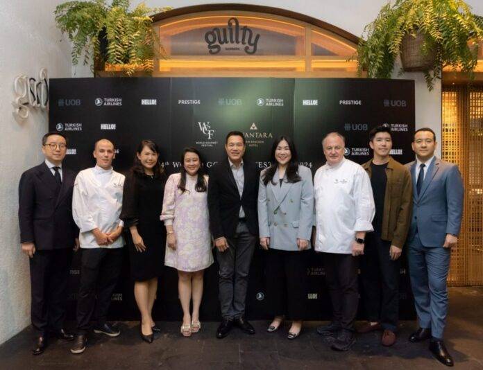 โรงแรมอนันตรา สยาม กรุงเทพฯ ร่วมกับ ธนาคารยูโอบี, สายการบินเตอร์กิชแอร์ไลน์, และเบอร์ด้าประเทศไทย ร่วมจัดงานแถลงข่าว “World Gourmet Festival 2024″ โดยมี มร.ไมเคิล หยาง ผู้จัดการโรงแรม (ซ้าย), เชฟสเตฟาน สติลเลอร์ มิชลินสตาร์ระดับ 3 ดาว, เชฟอีริค ราตี มิชลินสตาร์ระดับ 2 ดาว และแขกผู้มีเกียรติร่วมงานคับคั่ง อาทิ ม.ล.ภาสันต์ สวัสดิวัตน์, เชฟภู-ภูรินท์ พัฒนวิริยะวาณิช, อาลิซาเบธ แซ๊ดเลอร์ ฯลฯ ณ โรงแรมอนันตรา สยาม กรุงเทพฯ เมื่อเร็วๆนี้