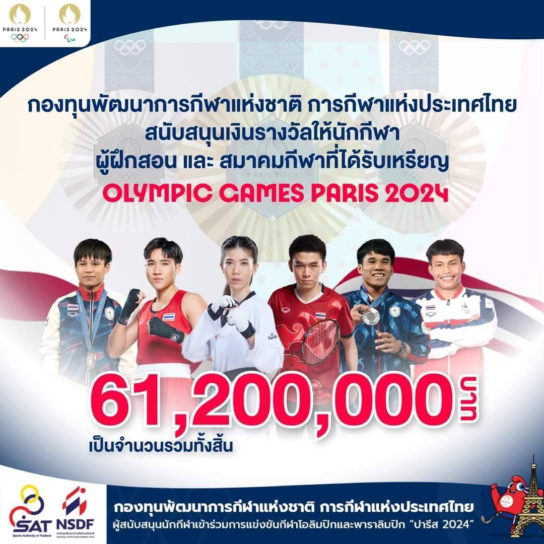 กองทุนพัฒนาการกีฬาแห่งชาติ การกีฬาแห่งประเทศไทย ขอแสดงความยินดีกับทัพนักกีฬาไทยที่คว้าเหรียญจากชัยชนะในการแข่งขันโอลิมปิกเกมส์ ปารีส 2024 ดังนี้