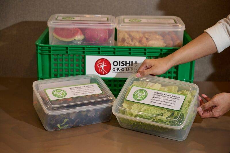 ด้าน บริษัท โออิชิ กรุ๊ป จำกัด (มหาชน) ในฐานะผู้ให้บริการร้านอาหารญี่ปุ่นรายใหญ่ ได้ตระหนักถึงความสำคัญของทรัพยากรอาหาร และเล็งเห็นถึงปัญหาดังกล่าว จึงได้วางนโยบายและแผนกลยุทธ์การขับเคลื่อนรูปแบบการผลิตและบริโภคที่ยั่งยืน โดยการลดปริมาณอาหารส่วนเกิน และการบริหารจัดการอาหารส่วนเกินให้ได้ประโยชน์สูงสุด ผ่านกิจกรรม และการดำเนินงานรูปแบบต่าง ๆ อย่างรอบด้าน อาทิ โครงการ #กินหมดเกลี้ยง CHALLENGE หรือแม้แต่โครงการ ไม่กินบอก…เอาออกให้ เป็นต้น อีกหนึ่งในโครงการสำคัญ คือ ภารกิจเพื่อสังคมและสิ่งแวดล้อม เปลี่ยนอาหารส่วนเกินให้มีประโยชน์สูงสุด โดยการส่งต่อให้กับชุมชนที่ต้องการความช่วยเหลือด้านอาหาร พร้อมประสานความร่วมมือ เชื่อมโยงธุรกิจร้านอาหารญี่ปุ่นในเครือโออิชิ สู่องค์กรการกุศล และชุมชน (ที่มีความต้องการอาหาร) เพื่อร่วมขับเคลื่อนและสร้างความเท่าเทียมทางอาหารในสังคมไปด้วยกัน
