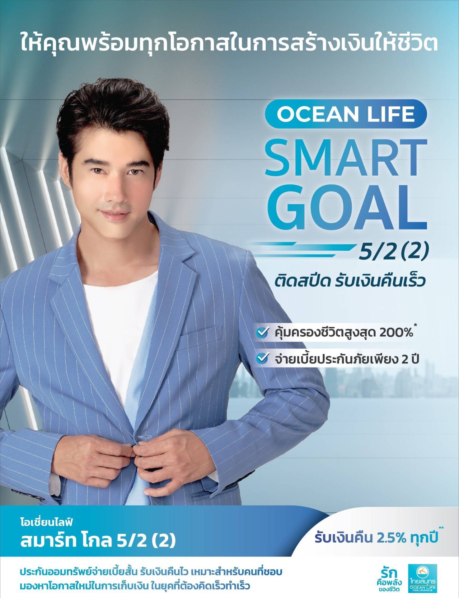 “โอเชี่ยนไลฟ์ สมาร์ท โกล 5/2 (2)” ชำระเบี้ยประกันภัยเพียง 2 ปี มีระยะเวลาคุ้มครอง 5 ปี รับเงินคืนระหว่างสัญญาทุกปี ๆ ละ 2.5%(1) และเมื่อครบกำหนดสัญญารับเงินครบกำหนดสัญญา 205% ระหว่างปีกรมธรรม์ที่ 2 – 5 คุ้มครองกรณีเสียชีวิต สูงสุด 200% ผู้สนใจสามารถสมัครทำประกันได้ง่าย โดยไม่ต้องตรวจสุขภาพ และไม่ต้องตอบคำถามสุขภาพในใบคำขอเอาประกันชีวิต(2) จำนวนเงินเอาประกันภัยขั้นต่ำ 100,000 บาท และไม่จำกัดจำนวนเงินเอาประกันภัยสูงสุด รับประกันภัยบุคคลที่มีอายุ 30 วัน – 75 ปี ดูรายละเอียดผลิตภัณฑ์ “โอเชี่ยนไลฟ์ สมาร์ท โกล 5/2 (2)” ได้ที่ https://www.ocean.co.th/our-products/savings/oceanlife-smartgoal52-2