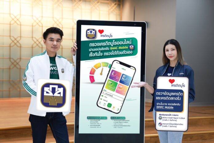 ธนาคารเพื่อการเกษตรและสหกรณ์การเกษตร (ธ.ก.ส.) ร่วมกับ บริษัท ข้อมูลเครดิตแห่งชาติ จำกัด (เครดิตบูโร) ให้บริการตรวจข้อมูลเครดิตและเครดิตสกอริ่ง ผ่านแอปพลิเคชัน“BAAC Mobile” ให้ประชาชนตรวจสุขภาพทางการเงินได้ง่ายสะดวก ตอบโจทย์พฤติกรรมลูกค้ายุคดิจิทัล ครบทุกข้อมูลสินเชื่อ รู้เท่าทันและป้องกันภัยไซเบอร์ทางการเงิน เลือกรับรายงานทางอีเมลภายใน 3 วันทำการ หรือรับผลทางไปรษณีย์ภายใน 7 วันทำการ เพื่อตรวจสอบข้อมูลเครดิตของตนเอง รู้เท่าทัน สถานะทางการเงินได้แล้ววันนี้เป็นต้นไป