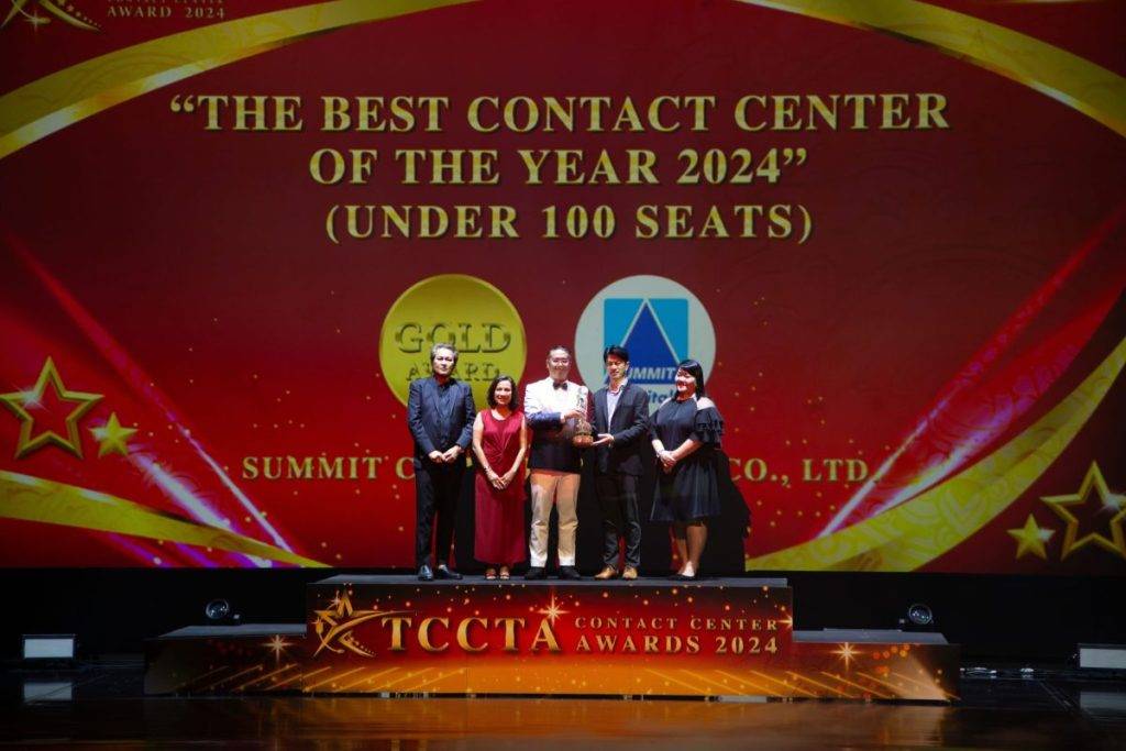 บริษัท ซัมมิท แคปปิตอล ลีสซิ่ง จำกัด ประกาศความสำเร็จครั้งยิ่งใหญ่ ด้วยการคว้ารางวัลอันทรงเกียรติถึง 3 รางวัล ในงาน “TCCTA Contact Center Awards 2024” ซึ่งจัดโดยสมาคมการค้าธุรกิจศูนย์บริการทางโทรศัพท์ไทย (TCCTA: Thai Contact Center Trade Association) ณ โรงละครอักษรา คิง เพาเวอร์ เพื่อเชิดชูผู้ประกอบการ Contact Center ที่มีผลงานโดดเด่นในการยกระดับคุณภาพการบริการและการสร้างความประทับใจให้แก่ผู้ใช้บริการอย่างยอดเยี่ยม