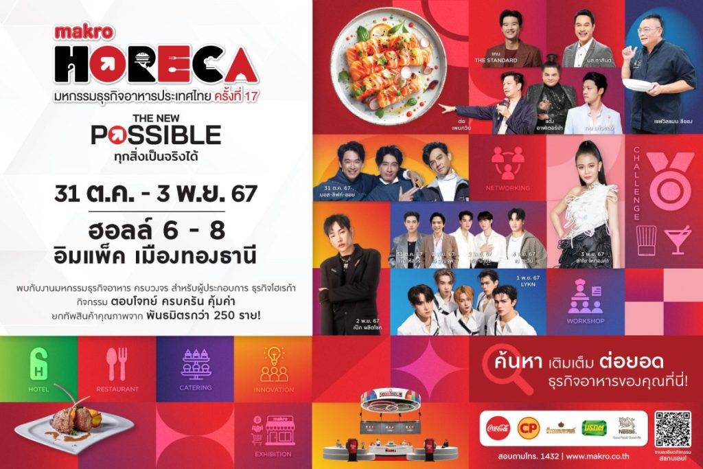 บริษัท ซีพี แอ็กซ์ตร้า จำกัด (มหาชน) ผู้ดำเนินธุรกิจค้าส่ง “แม็คโคร” เดินหน้าประกาศความพร้อมการจัดงาน “มหกรรมธุรกิจอาหารประเทศไทย ครั้งที่ 17” หรือ Makro HoReCa 2024 ภายใต้แนวคิด “THE NEW POSSIBLE ทุกสิ่งเป็นจริงได้” มุ่งพัฒนาศักยภาพผู้ประกอบการธุรกิจโฮเรก้าให้มีความแข็งแกร่ง และแข่งขันในตลาดได้ งานนี้เตรียมจัดเต็มกับกิจกรรมพิเศษตลอด 4 วัน นำโดยการแข่งขันปรุงอาหารชิงแชมป์ประเทศไทย เพื่อชิงสุดยอดเชฟจากทั่วประเทศสู่เวทีสากล, งานสัมมนากับกูรูอาหารชื่อดังทั่วฟ้าเมืองไทย, เวิร์กชอปจากเชฟระดับโลก และไม่ควรพลาดกับการรวมพลของกลุ่มเซเลบริตี้เชฟระดับประเทศ พร้อมพบกับทัพสินค้าคุณภาพจากพันธมิตรกว่า 250 รายที่เข้าร่วมงานกันอย่างคับคั่ง ตอบโจทย์ทุกความต้องการของผู้ประกอบการแบบครบจบในที่เดียว งานนี้จะจัดขึ้นในวันที่ 31 ตุลาคม – 3 พฤศจิกายน 2567 ณ อิมแพ็ค เมืองทองธานี ฮอลล์ 6-8
