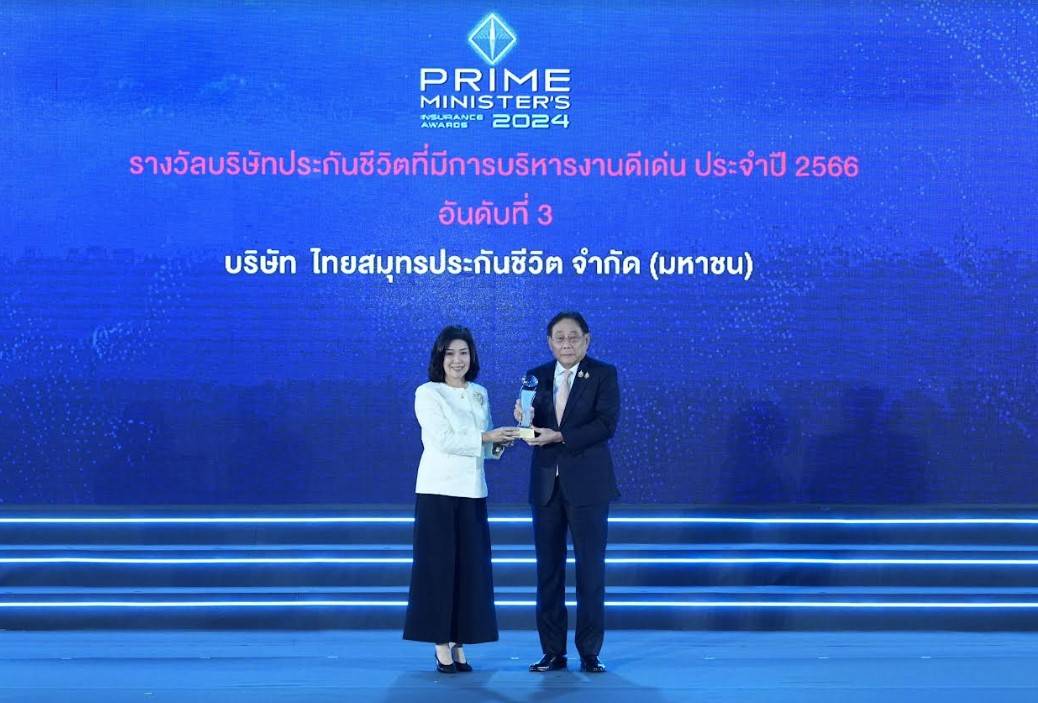 บมจ.ไทยสมุทรประกันชีวิต รักคือพลังของชีวิต โดยคุณนุสรา (อัสสกุล) บัญญัติปิยพจน์ ประธานเจ้าหน้าที่บริหารและกรรมการผู้จัดการ (CEO) รับรางวัล “บริษัทประกันชีวิตที่มีการบริหารงานดีเด่น อันดับที่ 3 ประจำปี 2566” จากคุณพิชัย ชุณหวชิร รองนายกรัฐมนตรีและรัฐมนตรีว่าการกระทรวงการคลัง ในงานมอบรางวัล ประกันภัยดีเด่นครบวงจร (Prime Minister’s Insurance Awards 2024) จากการคัดเลือกของสำนักงานคณะกรรมการกำกับและส่งเสริมการประกอบธุรกิจประกันภัย (คปภ.) โดย OCEAN ไทยสมุทรประกันชีวิต ถือเป็นหนึ่งในบริษัทประกันชีวิตในประเทศไทยที่ได้รับรางวัลอันทรงเกียรตินี้ ซึ่งสะท้อนถึงผลลัพธ์จากความมุ่งมั่นทุ่มเทในการบริหารงานด้วยพลังความรัก ใส่ใจในทุกด้านเพื่อลูกค้าโดยเฉพาะความเชื่อมั่นไว้วางใจ ในการดูแลจัดการทุกความเสี่ยงเพื่อให้ลูกค้าได้รับผลประโยชน์ต่างๆ ตามเงื่อนไขที่ระบุไว้ในสัญญา และรวมไปถึงการดำเนินธุรกิจตามหลักธรรมาภิบาล รับผิดชอบต่อสังคม การไม่หยุดพัฒนาธุรกิจให้มีส่วนช่วยส่งเสริมให้ทุกคนในสังคมมีความเป็นอยู่ที่ดี ทั้งด้านสุขภาพ การวางแผนการเงิน การปิดความเสี่ยงด้วยประกันชีวิต งานดังกล่าวจัดขึ้นที่โรงแรมเซ็นทาราแกรนด์ และบางกอกคอนเวนชันเซ็นเตอร์ เซ็นทรัลเวิลด์