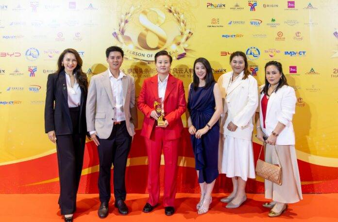 นางสาววรพนิต รวยรุ่งเรือง ประธานเจ้าหน้าที่บริหาร เรนวูด กรุ๊ป รับมอบรางวัล “2024 Thailand Headlines Person of the Year สาขาความสัมพันธ์ไทย-จีน” ที่มอบให้เพื่อเชิดชูเกียรติแก่บุคคลผู้สร้างสรรค์ผลงานและคุณูปการต่อสังคม