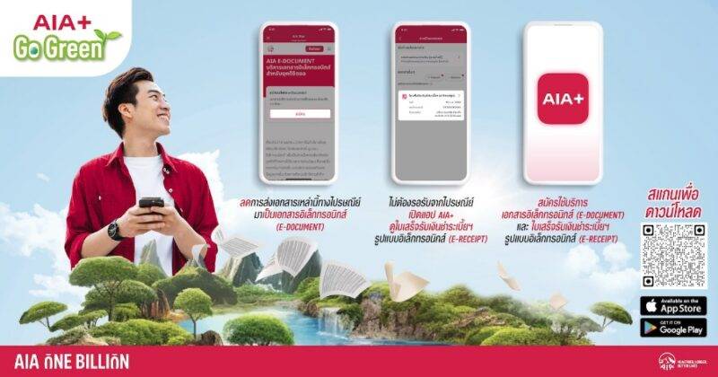 ภารกิจ ESG ของ “AIA+” ซูเปอร์แอปช่วยลดการใช้กระดาษง ชวนลูกค้าเปลี่ยนมาทำธุรกรรมผ่านแอป