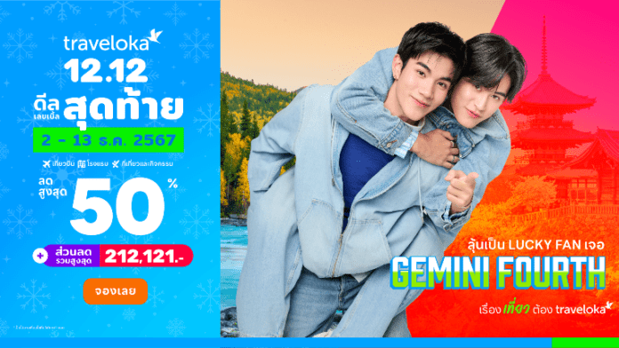 กรุงเทพฯ 2 ธันวาคม 2567 – Traveloka แพลตฟอร์มการท่องเที่ยวชั้นนำของเอเชียตะวันออกเฉียงใต้ เชิญชวนนักท่องเที่ยวเติมเต็มแผนวันหยุดในฝันช่วงปลายปีนี้ด้วยแคมเปญ Traveloka 12.12 ดีลเลขเบิ้ลสุดท้าย! กิจกรรมสุดพิเศษที่จัดขึ้นระหว่างวันที่ 2-13 ธันวาคม 2567 นี้ ช่วยให้นักท่องเที่ยวทุกคนได้หลีกหนีจากความวุ่นวายมาพักผ่อนอย่างสมบูรณ์แบบ ไม่ว่าจะเป็นการสัมผัสกับความมหัศจรรย์ของฤดูหนาวท่ามกลางหิมะ อาบแดดอุ่น ๆ บนชายหาดในเขตร้อน หรือดื่มด่ำกับแสงสีเสียงของเมืองใหญ่ ด้วยส่วนลดสูงสุด 50% คูปองพิเศษ และส่วนลดพิเศษสำหรับเที่ยวบิน ที่พัก และกิจกรรมด้านการท่องเที่ยว นักท่องเที่ยวชาวไทยสามารถเติมเต็มแผนวันหยุดในฝันของตนได้ง่ายยิ่งขึ้น
