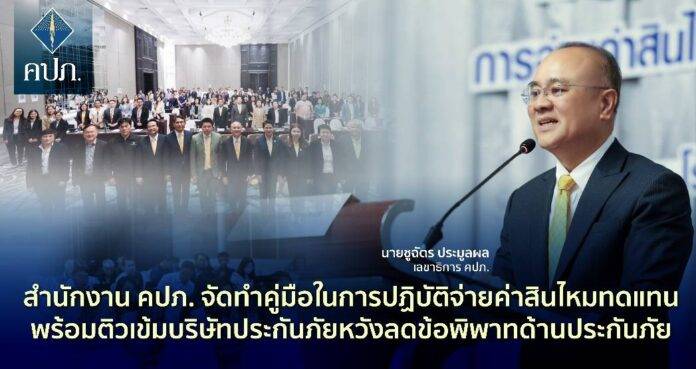 นายชูฉัตร ประมูลผล เลขาธิการคณะกรรมการกำกับและส่งเสริมการประกอบธุรกิจประกันภัย (เลขาธิการ คปภ.)เป็นประธานเปิดการจัดอบรมคู่มือและแนวทางในการปฏิบัติตามประกาศ คปภ. ว่าด้วยหลักเกณฑ์ วิธีการ เงื่อนไข และระยะเวลาในการชดใช้เงินหรือค่าสินไหมทดแทนตามสัญญาประกันภัย และกรณีที่ถือว่าเป็นการประวิงการจ่ายค่าสินไหมทดแทนหรือประวิงการคืนเบี้ยประกันภัยของบริษัทประกันภัย เมื่อวันที่ 16 ธันวาคม 2567 ณ โรงแรมเซ็นทาราแกรนด์ เซ็นทรัลพลาซา ลาดพร้าว กรุงเทพฯ โดยมีวัตถุประสงค์เพื่อสร้างความเข้าใจให้กับบริษัทประกันภัยเกี่ยวกับคู่มือในการปฏิบัติตามประกาศ คปภ. ว่าด้วยหลักเกณฑ์ วิธีการ เงื่อนไข และระยะเวลา ในการชดใช้เงินหรือค่าสินไหมทดแทน ตามสัญญาประกันภัย และกรณีที่ถือว่าเป็นการประวิงการจ่ายค่าสินไหมทดแทน หรือประวิงการคืนเบี้ยประกันภัยของบริษัทประกันภัย ซึ่งมีผลบังคับใช้ตั้งแต่ปี 2566 เป็นต้นมา แต่พบว่ามีประเด็นปัญหาในการตีความหรือการบังคับใช้กฎหมายฉบับดังกล่าว อีกทั้ง ข้อมูลเชิงสถิติพบว่าจำนวนเรื่องร้องเรียนขอให้ลงโทษบริษัทประกันภัยเกี่ยวกับการชดใช้เงินหรือค่าสินไหมทดแทนที่ล่าช้าหรือไม่เป็นไปตามที่เงื่อนไขกรมธรรม์ประกันภัยกำหนด ยังคงมีจำนวนมาก และไม่มีแนวโน้มว่าจะลดลง ดังนั้นสำนักงาน คปภ. จึงได้จัดทำคู่มือในการปฏิบัติตามประกาศฯ ดังกล่าว เพื่อเป็นคำอธิบายให้เห็นถึงเจตนารมณ์และแนวทางการใช้ การตีความกฎหมายให้แก่ภาคธุรกิจประกันภัย ให้เข้าใจหลักการและแนวคิดของกฎหมาย และสามารถประยุกต์ใช้ได้อย่างถูกต้องและสอดคล้องตามที่สำนักงาน คปภ. กำหนด นอกจากนี้ คู่มือฉบับดังกล่าวยังเป็นประโยชน์สำหรับพนักงานเจ้าหน้าที่ของสำนักงาน คปภ. ที่จะช่วยลดระยะเวลาและขั้นตอนในการปฏิบัติงานให้เกิดความรวดเร็วและถูกต้อง ช่วยป้องกันความผิดพลาดในการตีความและบังคับใช้กฎหมาย ซึ่งจะส่งผลให้สามารถปฏิบัติงานเป็นไปในทิศทางเดียวกัน อันจะช่วยลดข้อโต้แย้งที่จะนำไปสู่ข้อพิพาท ที่ต้องเสียทั้งทรัพยากรและเวลา ของเจ้าหน้าที่ บริษัทประกันภัย และประชาชนผู้เอาประกันภัยได้อย่างมีประสิทธิภาพมากยิ่งขึ้น