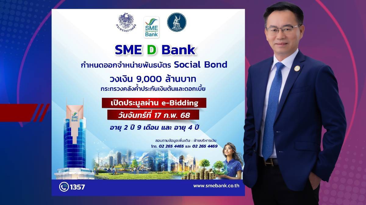 ธนาคารพัฒนาวิสาหกิจขนาดกลางและขนาดย่อมแห่งประเทศไทย (SME D Bank) เตรียมเปิดจำหน่ายพันธบัตรประเภท Social Bond มูลค่ารวม 9,000 ล้านบาท ในวันที่ 17 กุมภาพันธ์ 2568 ผ่านระบบ e-Bidding ซึ่งได้รับการค้ำประกันเงินต้นและดอกเบี้ยโดยกระทรวงการคลัง นับเป็นโอกาสสำคัญสำหรับนักลงทุนที่ต้องการผลตอบแทนที่มั่นคง พร้อมสนับสนุนเอสเอ็มอีและวิสาหกิจชุมชนให้เติบโตอย่างยั่งยืน