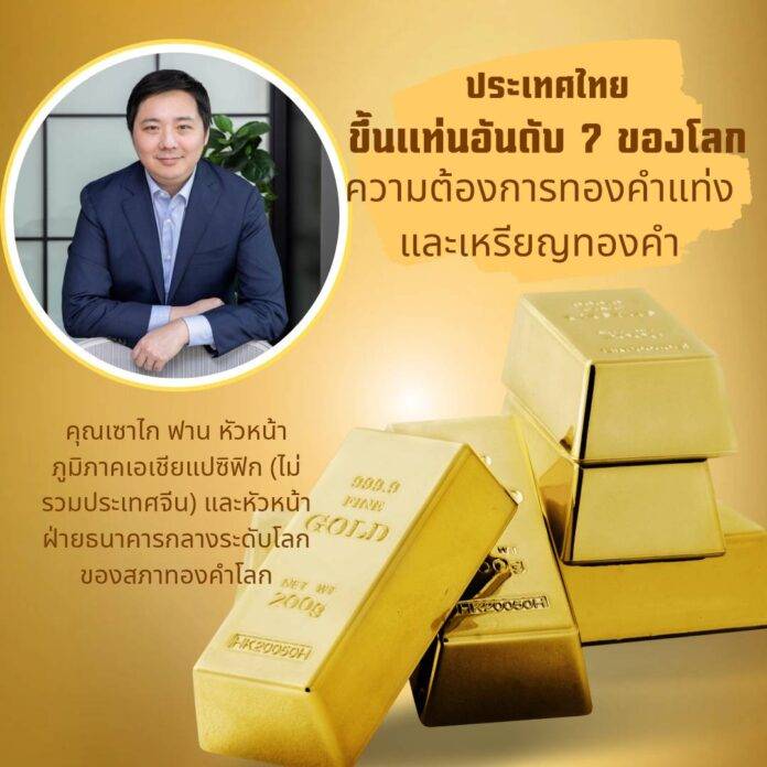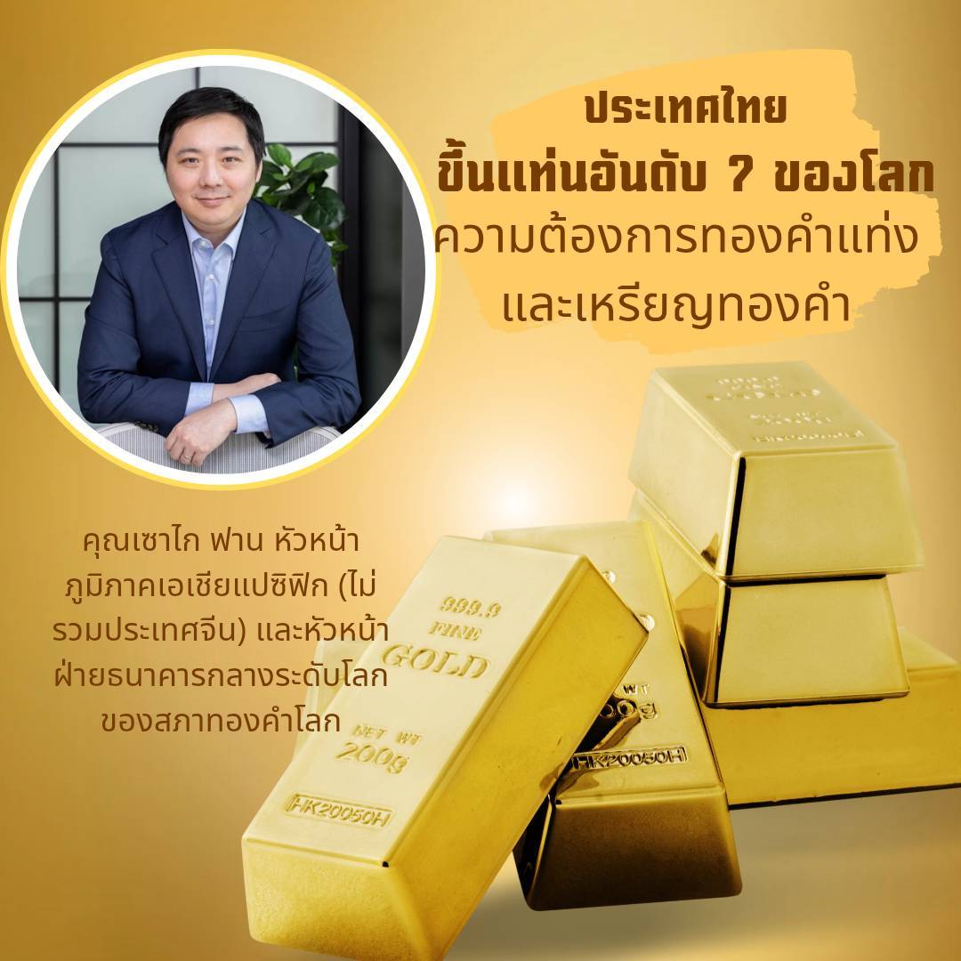 คุณเซาไก ฟาน (Shaokai Fan) หัวหน้าภูมิภาคเอเชียแปซิฟิกของสภาทองคำโลกกล่าวว่า ความต้องการทองคำในประเทศไทยยังคงเติบโตอย่างแข็งแกร่ง แม้จะเผชิญกับราคาทองคำที่สูง โดยคนไทยยังคงมองว่าทองคำเป็นสินทรัพย์ที่มีความมั่นคงและช่วยลดความเสี่ยงจากความไม่แน่นอนทางเศรษฐกิจ