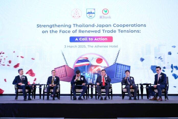 ธนาคารกสิกรไทย ร่วมกับ สมาคมไทย-ญี่ปุ่น (TJA) และหอการค้าญี่ปุ่น-กรุงเทพฯ จัดงานสัมมนา “Strengthening Thailand-Japan Cooperation on the Face of Renewed Trade Tensions” เพื่อเป็นโอกาสให้ผู้ประกอบการไทย-ญี่ปุ่นได้ยกระดับความร่วมมือในการเผชิญกับความไม่แน่นอนทางการค้าและภูมิรัฐศาสตร์ทั่วโลก และเน้นย้ำถึงความมุ่งมั่นของรัฐบาลไทยในการสนับสนุนธุรกิจญี่ปุ่นในประเทศไทยตลอดจนแลกเปลี่ยนมุมมองทางธุรกิจ ด้านศูนย์วิจัยกสิกรไทยมองว่า บริษัทญี่ปุ่นมีศักยภาพในการขยายการลงทุนและสร้างการเติบโตในหลากหลายภาคส่วน โดยเฉพาะในอุตสาหกรรมเทคโนโลยีขั้นสูง ทำให้นักลงทุนและธุรกิจญี่ปุ่นในประเทศไทยกำลังเผชิญทั้งโอกาสและความท้าทายที่สำคัญ โดยธนาคารกสิกรไทยพร้อมสนับสนุนภาคธุรกิจไทยและญี่ปุ่น ในการปรับตัวรับความเปลี่ยนแปลงที่รวดเร็ว ผ่านบริการทางการเงินที่หลากหลาย การให้คำปรึกษา รวมทั้งการเชื่อมต่อภูมิภาค AEC+3