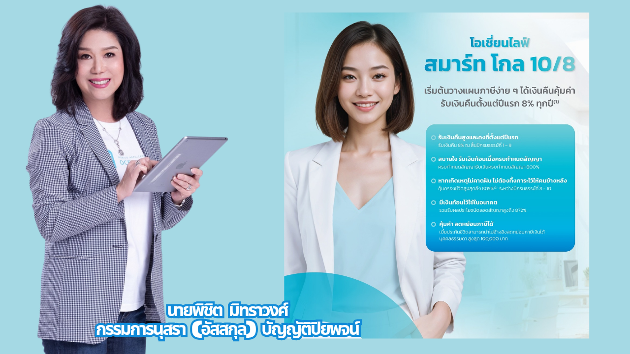OCEAN LIFE ไทยสมุทร ส่งประกันสะสมทรัพย์ “โอเชี่ยนไลฟ์ สมาร์ท โกล 10/8” ตัวช่วยเพิ่มความมั่นคงในอนาคต รับเงินคืนสูงทุกปีตั้งแต่ปีแรก