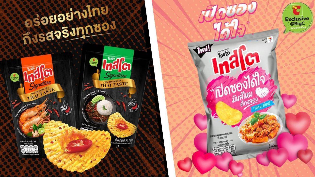 “เทสโต’’ มันฝรั่งแท้ทอดกรอบ ภายใต้การบริหารของ บริษัท เบอร์ลี่ ยุคเกอร์ จำกัด (มหาชน) หรือ บีเจซี เปิดตัว มันฝรั่งรสชาติใหม่ “เทสโต เพนเนโรเซ่” สุดเซอร์ไพรส์น่ารักๆ ด้วยชิ้นหัวใจในซอง รสชาติเพเนโรเซ่ สไตล์อิตาลี หอมนัว กรอบมันส์ ด้วยรสชาตินัวๆ หอมเข้มข้นกำลังดี ที่มีวางจำหนายเฉพาะ เซเว่น อีเลฟเว่น 42 กรัม ราคา 22 บาท และสัมผัสความอร่อยอย่างไทย ถึงรสจริงทุกซอง กับเทสโต ซิกเนเจอร์ อีก 2 รสชาติ ได้แก่ รสต้มยำกุ้งน้ำข้น และรสกะเพราคั่วพริกแห้ง พร้อมพริกจริงในซอง ให้รสเข้มข้นถึงเครื่องแบบไทยแท้ พิสูจน์ความอร่อยได้เลย! ที่ Big C ทุกสาขา 90 กรัม ราคา 49 บาท