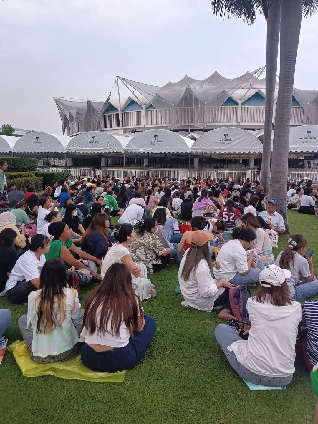 บรรยากาศเต็มไปด้วยความมุ่งมั่นและตื่นเต้นของเหล่าแฟนคลับที่อยากเป็นส่วนหนึ่งของคอนเสิร์ตใหญ่ครั้งนี้ หลายคนเตรียมพร้อมทั้งเสื่อรองนั่ง พัดลมมือถือ และอาหารว่าง ท่ามกลางสภาพอากาศร้อนจัด แต่ยังคงยิ้มสู้และให้กำลังใจกันเองอย่างอบอุ่น