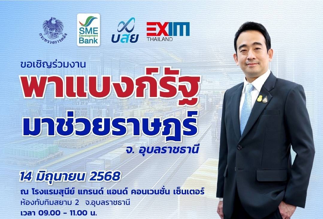 3 สถาบันการเงินของรัฐ ภายใต้กำกับกระทรวงการคลัง ได้แก่ ธนาคารพัฒนาวิสาหกิจขนาดกลางและขนาดย่อมแห่งประเทศไทย (ธพว.) หรือ SME D Bank ธนาคารเพื่อการส่งออกและนำเข้าแห่งประเทศไทย (EXIM BANK) และบรรษัทประกันสินเชื่ออุตสาหกรรมขนาดย่อม (บสย.) จับมือขับเคลื่อนนโยบายรัฐบาล เดินหน้าช่วยกระตุ้นเศรษฐกิจ จัดโครงการ “พาแบงก์รัฐ มาช่วยราษฎร์” นำบริการจาก 3 หน่วยงานมาสนับสนุนผู้ประกอบการเอสเอ็มอี จ.อุบลราชธานี และใกล้เคียง ถึงพื้นที่อย่างครบถ้วนในจุดเดียว ทั้งด้านการเงินและการพัฒนา ในวันที่ 14 มิถุนายน 2568 เวลา 9.00-11.00 น. ณ โรงแรมสุนีย์ แกรนด์ แอนด์ คอนเวนชั่น เซ็นเตอร์ จ.อุบลราชธานี