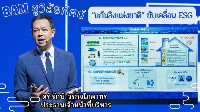 ในเวที THAILAND C VISION SUMMIT 2025 ที่จัดขึ้น ณ พารากอนฮอลล์ สยามพารากอน โดย Business Plus ได้มีการเปิดเวทีสำคัญให้กับผู้นำองค์กรชั้นนำในการแสดงวิสัยทัศน์ด้าน ESG ภายใต้หัวข้อ “ESG ไม่ทำ = ไม่รอด” หนึ่งในไฮไลต์ของเวทีนี้คือการปรากฏตัวของ ดร.รักษ์ วรกิจโภคาทร ประธานเจ้าหน้าที่บริหาร บริษัท บริหารสินทรัพย์ กรุงเทพพาณิชย์ จำกัด (มหาชน) หรือ #BAM ซึ่งได้นำเสนอแนวทางการดำเนินธุรกิจที่เชื่อมโยงภารกิจขององค์กรกับความยั่งยืนอย่างแท้จริง ด้วยวิสัยทัศน์ “#แก้มลิงแห่งชาติ” เพื่อเป็นกลไกบรรเทาความเสียหายจากหนี้เสียในระบบเศรษฐกิจไทย