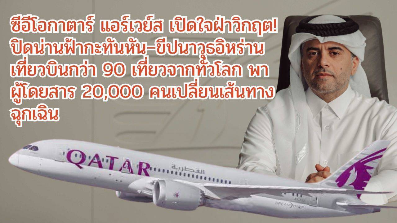 ในจดหมายเปิดผนึกถึงผู้โดยสารทั่วโลก วิศวกร บัดร์ โมฮัมเหม็ด อัล-มีร์ ประธานเจ้าหน้าที่บริหารกลุ่มสายการบิน กาตาร์ แอร์เวย์ส เปิดเผยถึงวิกฤตครั้งรุนแรงที่สายการบินต้องเผชิญเมื่อ 23 มิถุนายน 2568 ที่ผ่านมา ซึ่งเริ่มต้นจากการถูกสั่งปิดน่านฟ้ากาตาร์อย่างฉับพลัน ตามมาด้วยการยิงขีปนาวุธจากอิหร่านมุ่งสู่ฐานทัพในประเทศ พร้อมคำสั่งปิดน่านฟ้าเพิ่มเติมในหลายประเทศใกล้เคียง ส่งผลให้การบินของสายการบินระดับโลกต้องหยุดชะงักแบบไม่เคยเกิดขึ้นมาก่อน