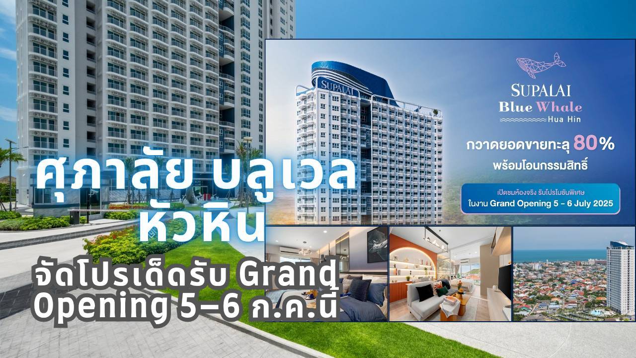 ศุภาลัยเตรียมจัดงาน Grand Opening อย่างเป็นทางการในวันที่ 5–6 กรกฎาคมนี้ ที่โครงการศุภาลัย บลูเวล หัวหิน มอบข้อเสนอสุดพิเศษเฉพาะในงาน อาทิ ส่วนลดสูงสุด 10% ของแถมกว่า 20 รายการ และสิทธิพิเศษอื่น ๆ อีกมากมาย