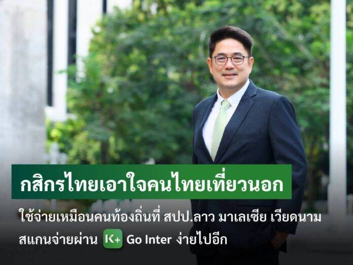 ดร.พิพัฒน์พงศ์ โปษยานนท์ ผู้จัดการใหญ่ ธนาคารกสิกรไทย เปิดเผยว่า ธนาคารมุ่งพัฒนาระบบชำระเงินระหว่างประเทศที่มีความเสถียรและปลอดภัย เพื่อรองรับพฤติกรรมของนักท่องเที่ยวไทยที่นิยมเดินทางไปยังประเทศเพื่อนบ้านมากขึ้น โดยเฉพาะการเที่ยวแบบสัมผัสวิถีท้องถิ่น เช่น การเลือกทานอาหารในตลาด คาเฟ่ หรือร้านสตรีทฟู้ด ซึ่งก่อนหน้านี้ผู้บริโภคจำเป็นต้องใช้เงินสดเท่านั้น แต่ปัจจุบันเพียงแค่มี K PLUS ก็สามารถสแกนจ่ายได้ง่ายดายผ่าน K+ Go Inter