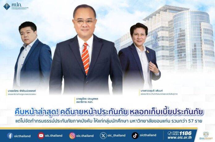 สำนักงานคณะกรรมการกำกับและส่งเสริมการประกอบธุรกิจประกันภัย (คปภ.) สั่งเพิกถอนใบอนุญาต “นายบัณฑิต จำปาแขม” นายหน้าประกันวินาศภัย หลังพบพฤติกรรมหลอกเก็บเงินค่าเบี้ยประกันภัยภาคบังคับ (พ.ร.บ.) จากกลุ่มนักศึกษามหาวิทยาลัยขอนแก่น จำนวน 57 ราย โดยไม่ส่งเงินต่อให้บริษัทประกันภัย และไม่ดำเนินการจัดทำกรมธรรม์ให้แต่อย่างใด
