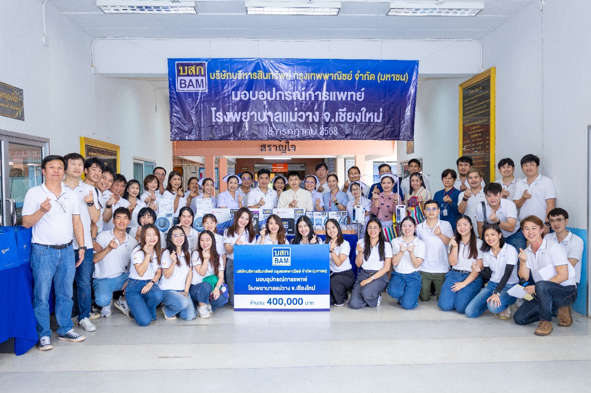 ทั้งนี้ โครงการมอบอุปกรณ์การแพทย์ของ BAM เป็นส่วนหนึ่งในแผนงานด้านความรับผิดชอบต่อสังคม (CSR) ที่ดำเนินการมาอย่างต่อเนื่องเป็นปีที่ 13 โดยมีเป้าหมายส่งมอบอุปกรณ์ทางการแพทย์ให้แก่โรงพยาบาลทั่วประเทศอย่างน้อยปีละ 10 แห่ง รวมแล้วกว่า 147 แห่ง คิดเป็นมูลค่ารวมกว่า 43 ล้านบาท แสดงถึงความมุ่งมั่นของ BAM ในการส่งเสริมให้ประชาชนไทยมีสุขภาพดีอย่างยั่งยืน และสามารถเข้าถึงบริการทางการแพทย์ที่มีคุณภาพอย่างเท่าเทียม