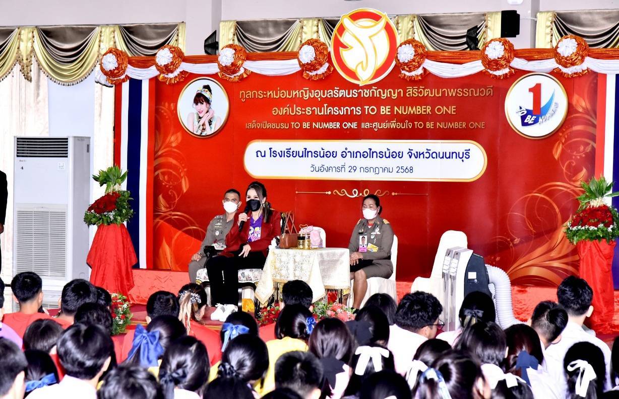 เมื่อวันอังคารที่ 29 กรกฎาคม 2568 ที่ผ่านมา ทูลกระหม่อมหญิงอุบลรัตนราชกัญญา สิริวัฒนาพรรณวดี เสด็จเยี่ยมติดตามการดำเนินงานโครงการ TO BE NUMBER ONE และทรงเปิดชมรม TO BE NUMBER ONE รวมถึงศูนย์เพื่อนใจ TO BE NUMBER ONE ณ โรงเรียนไทรน้อย อำเภอไทรน้อย จังหวัดนนทบุรี โดยมีนายวิชัย ไชยมงคล ที่ปรึกษารัฐมนตรีว่าการกระทรวงสาธารณสุข นายเกียรติศักดิ์ ตรงศิริ ผู้ว่าราชการจังหวัดนนทบุรี นายแพทย์ศิริศักดิ์ ธิติดิลกรัตน์ รองอธิบดีกรมสุขภาพจิต หม่อมหลวงยุพดี ศิริวรรณ ที่ปรึกษาโครงการ TO BE NUMBER ONE และเลขาธิการมูลนิธิโครงการ TO BE NUMBER ONE พร้อมด้วยคณะผู้บริหาร นักเรียน และประชาชนในพื้นที่ ร่วมเฝ้ารับเสด็จอย่างพร้อมเพรียง