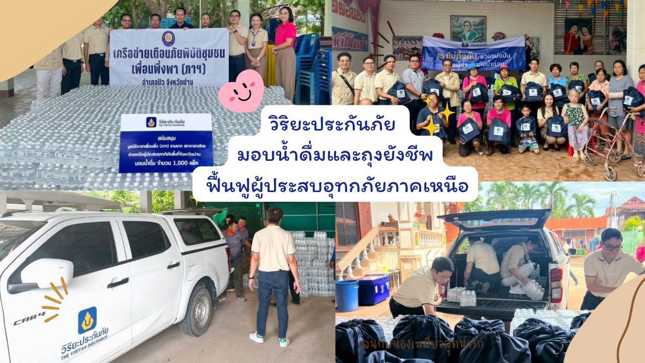 บริษัท วิริยะประกันภัย จำกัด (มหาชน) โดยนายจตุรงค์ แสงสุข ผู้จัดการฝ่ายปฏิบัติการภาค 1 (ภาคเหนือ) ด้านสาขา นำกลุ่ม “วิริยะจิตอาสา” ลงพื้นที่ช่วยเหลือผู้ประสบอุทกภัยในพื้นที่ภาคเหนือ มอบน้ำดื่มจำนวน 12,000 ขวด พร้อมถุงยังชีพ ให้แก่เครือข่ายเตือนภัยพิบัติชุมชนเพื่อนพึ่ง (ภาฯ) ณ อำเภอปัว จังหวัดน่าน เพื่อบรรเทาความเดือดร้อนและเสริมสร้างขวัญกำลังใจแก่ประชาชน