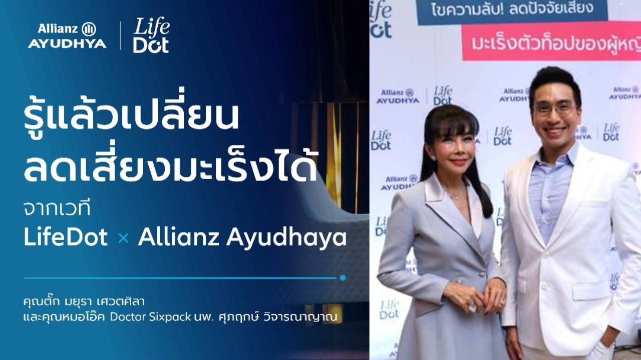 บมจ.อลิอันซ์ อยุธยา ประกันชีวิต จับมือกับ Lifedot เปิดเวทีพิเศษ TUCK Talk Podcast ชวนสายเฮลตี้และคนรักสุขภาพร่วมรับฟังความรู้เชิงลึกเรื่อง “มะเร็ง” โดยมีแขกรับเชิญพิเศษ นายแพทย์ศุภฤกษ์ วิจารณาญาณ (หมอโอ๊ค Doctor Sixpack) มาแบ่งปันข้อมูลสำคัญเกี่ยวกับโรคมะเร็ง โดยเฉพาะในผู้หญิง พร้อมแนะทริคการดูแลสุขภาพเชิงป้องกัน และ ตั๊ก-มยุรา เศวตศิลา ทำหน้าที่พิธีกร ร่วมถามแทนใจผู้ชม