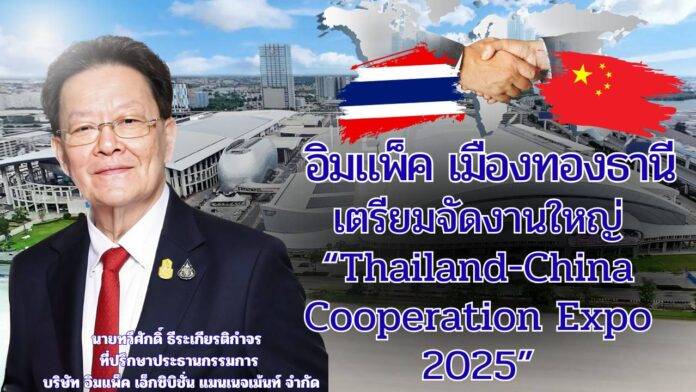 อิมแพ็ค เมืองทองธานี ร่วมกับคณะกลไกประสานงานและส่งเสริมธุรกิจไทย-จีน นำโดยสภาหอการค้าแห่งประเทศไทย หอการค้าไทย-จีน และสมาคมการค้าวิสาหกิจจีนในไทย ประกาศความพร้อมจัดงาน Thailand-China Cooperation Expo 2025 ระหว่างวันที่ 26-28 กันยายน 2568 บนพื้นที่กว่า 40,000 ตารางเมตร ณ อาคารชาเลนเจอร์ 2-3