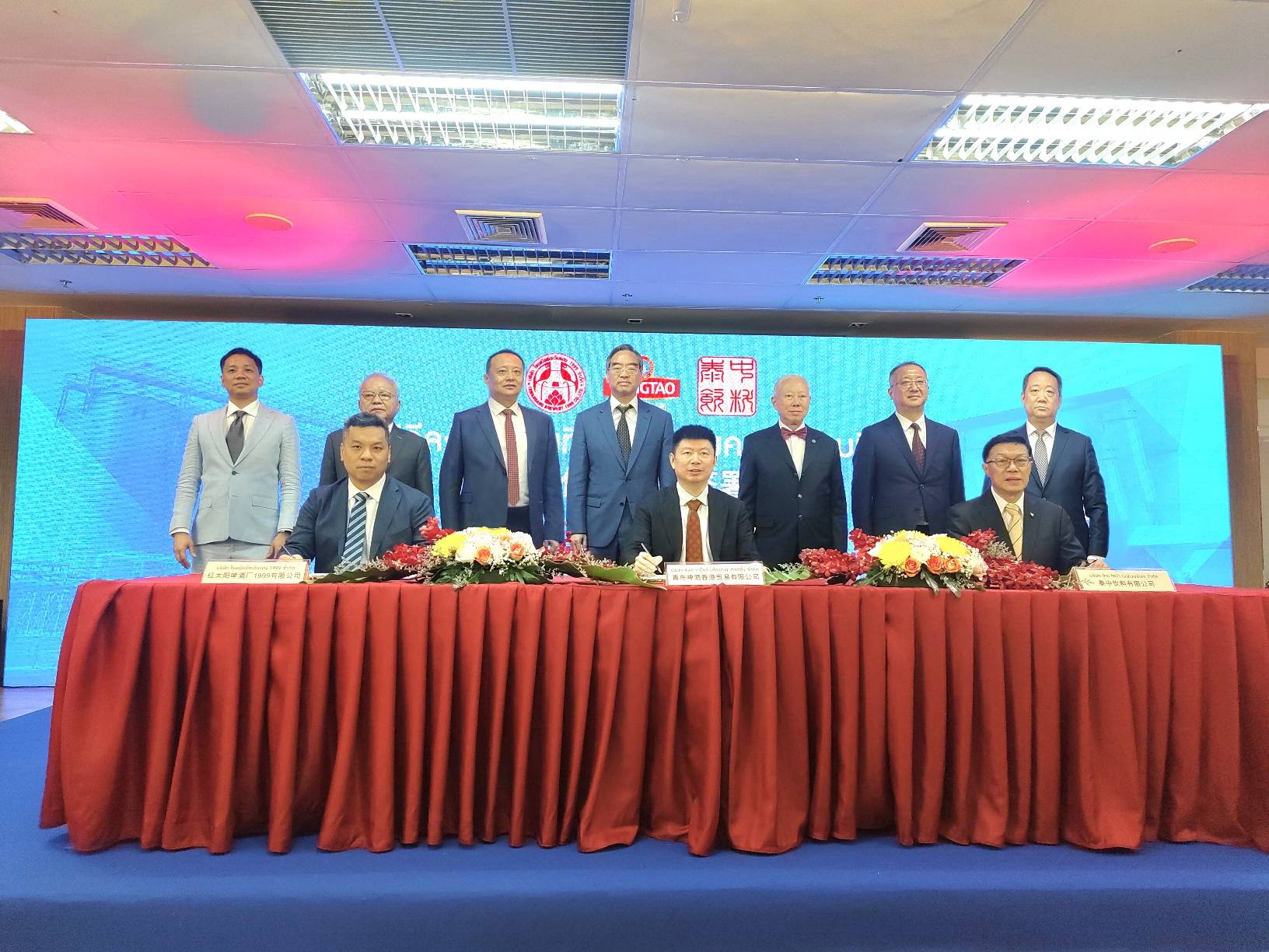 บริษัท เบียร์ชิงเต่า ร่วมกับ บริษัท โรงเบียร์ตะวันแดง 1999 จำกัด, บริษัท ไทย ไชน่า เบฟเวอร์เรจ จำกัด และ บริษัท ชิงเต่า เบียร์ (ฮ่องกง) เทรดดิ้ง จำกัด จัดพิธีลงนามบันทึกข้อตกลงความร่วมมือเชิงกลยุทธ์สามฝ่าย ณ ชั้น 3 อาคาร 393 สำนักงานใหญ่คาราบาวกรุ๊ป