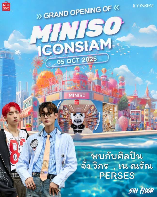 สาวกนักช้อปและสายสะสมห้ามพลาด! ✨ MINISO (มินิโซ) แบรนด์สินค้าไลฟ์สไตล์สุดคิวท์ระดับโลก เตรียมสร้างปรากฏการณ์สุดอลังการกับงาน Grand Opening ฉลองสาขาใหม่ล่าสุด ณ ICONSIAM ชั้น 5 ในวัน อาทิตย์ที่ 5 ตุลาคม 2568 พร้อมจัดเต็มกิจกรรมสุดพิเศษแบบเอ็กซ์คลูซีฟ