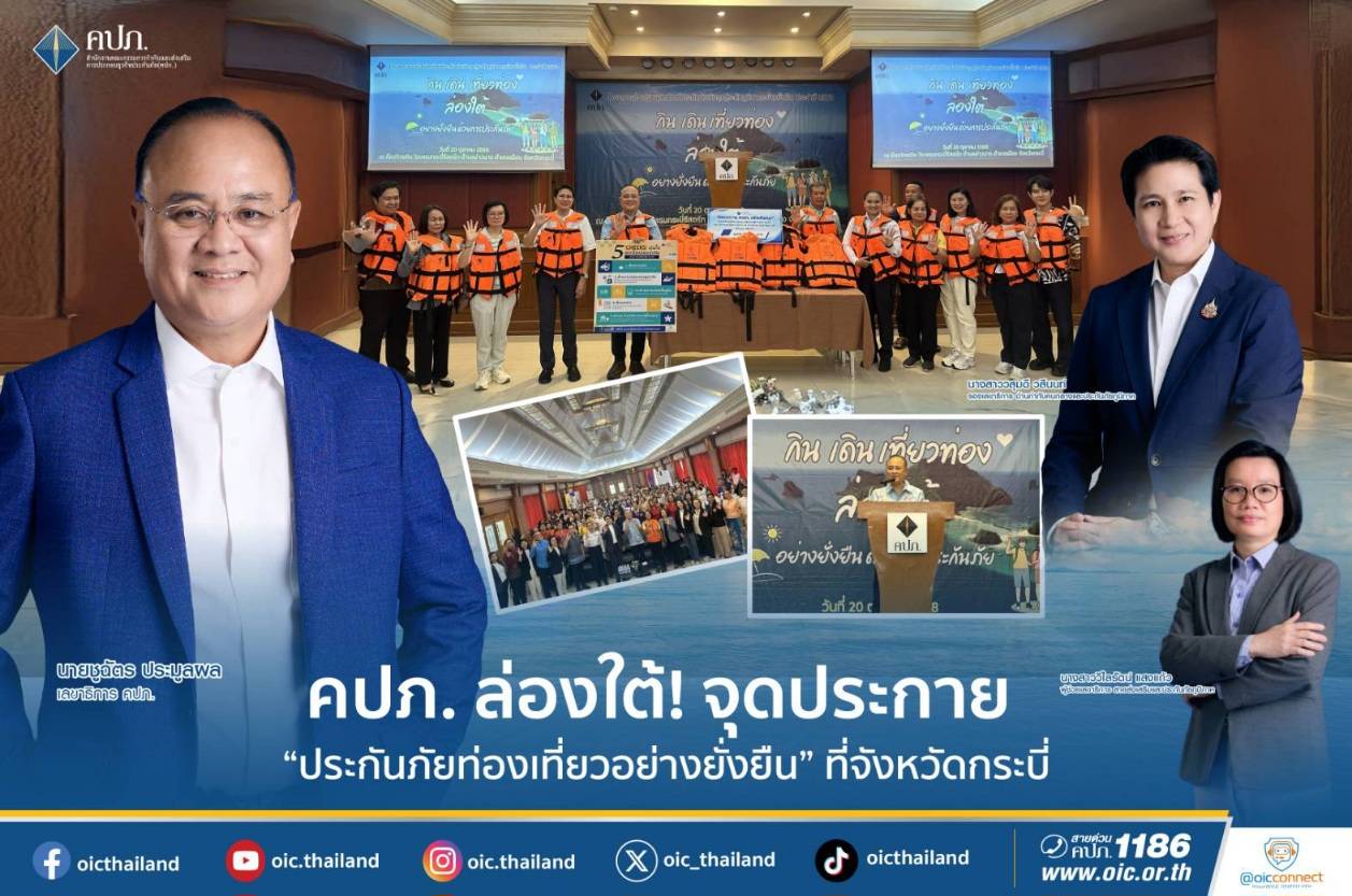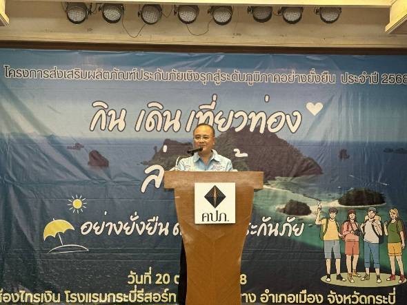 สำนักงานคณะกรรมการกำกับและส่งเสริมการประกอบธุรกิจประกันภัย (สำนักงาน คปภ.) นำโดย นายชูฉัตร ประมูลผล เลขาธิการ คปภ. ลงพื้นที่จังหวัดกระบี่ เปิดโครงการส่งเสริมประกันภัยเชิงรุก ภายใต้แนวคิด “กิน เดิน เที่ยวท่อง ล่องใต้อย่างยั่งยืน ด้วยการประกันภัย” ณ โรงแรมกระบี่ รีสอร์ท ตำบลอ่าวนาง อำเภอเมือง จังหวัดกระบี่