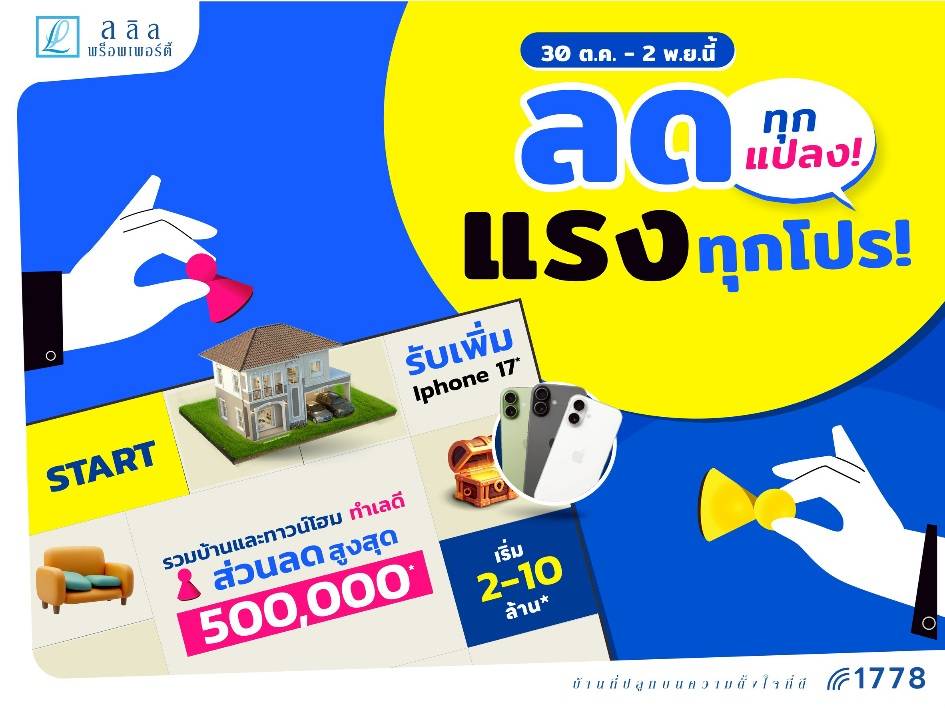 ลลิล พร็อพเพอร์ตี้ จำกัด (มหาชน) หรือ LALIN เตรียมมอบข้อเสนอสุดพิเศษภายในงาน “มหกรรมบ้านและคอนโด ครั้งที่ 48” ระหว่างวันที่ 30 ตุลาคม – 2 พฤศจิกายน 2568 ณ ศูนย์การประชุมแห่งชาติสิริกิติ์ ขนโครงการบ้านคุณภาพกว่า 40 โครงการทั่วกรุงเทพฯ และปริมณฑล มาให้เลือก พร้อม ส่วนลดสูงสุด 500,000 บาท และ รับฟรี iPhone 17 มูลค่า 29,900 บาท สำหรับลูกค้าที่จองบ้านภายในงาน