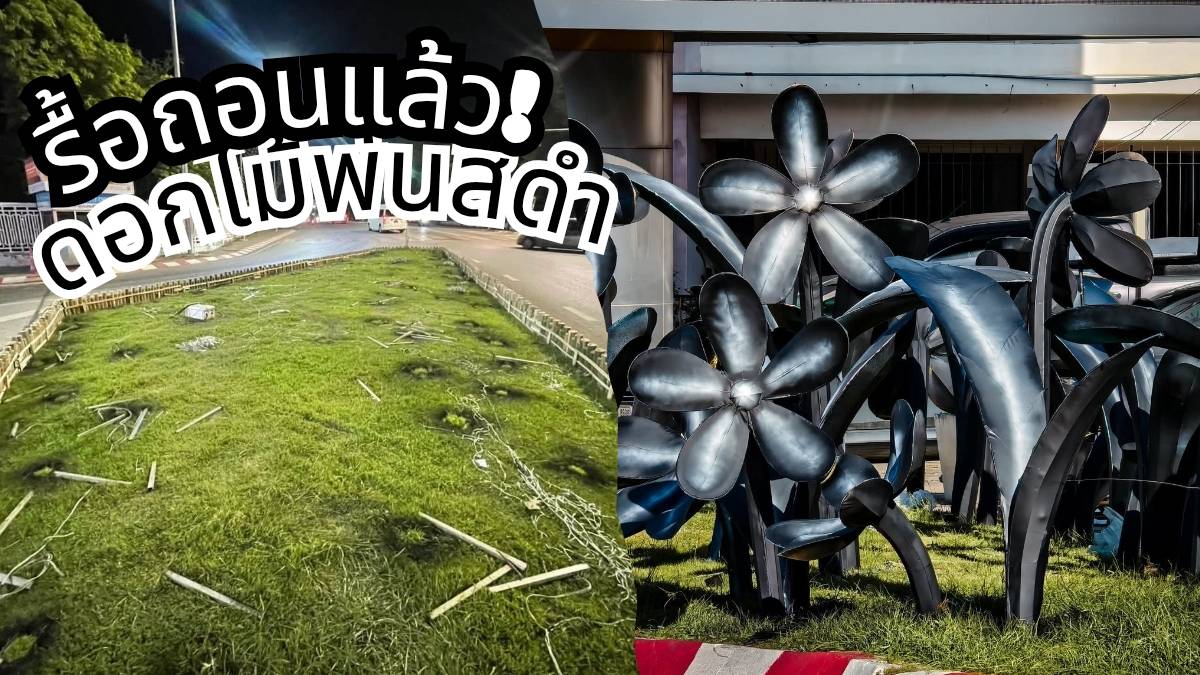 เชียงใหม่ – จากกรณีผลงานศิลปะ “เหล่าดอกไม้พ่นสีดำ” ที่จัดแสดงบริเวณลานข่วงประตูท่าแพ ในงานประเพณียี่เป็งเชียงใหม่ปีนี้ จนกลายเป็นกระแสวิพากษ์วิจารณ์อย่างกว้างขวาง ล่าสุดค่ำวันนี้ (28 ต.ค.) ทีมงานเทศบาลนครเชียงใหม่ได้เข้าดำเนินการรื้อถอนผลงานทั้งหมดออกจากพื้นที่เรียบร้อยแล้ว